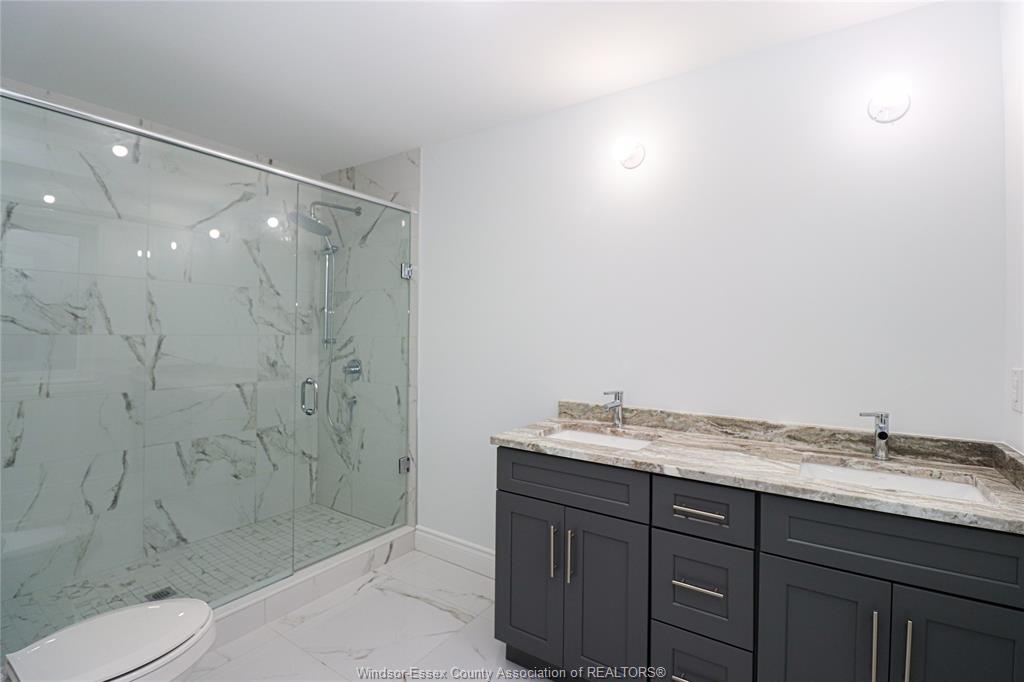 • Luxurious ensuite bath with tiled shower and walk-in closet.