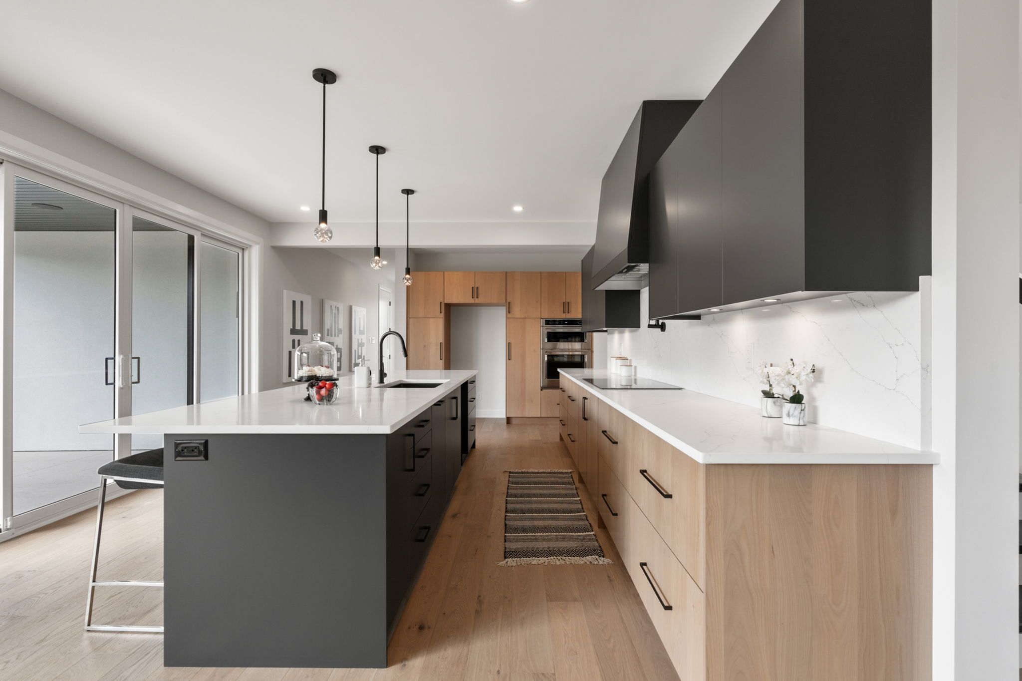 • Chef-inspired kitchen with custom cabinetry and large pantry.