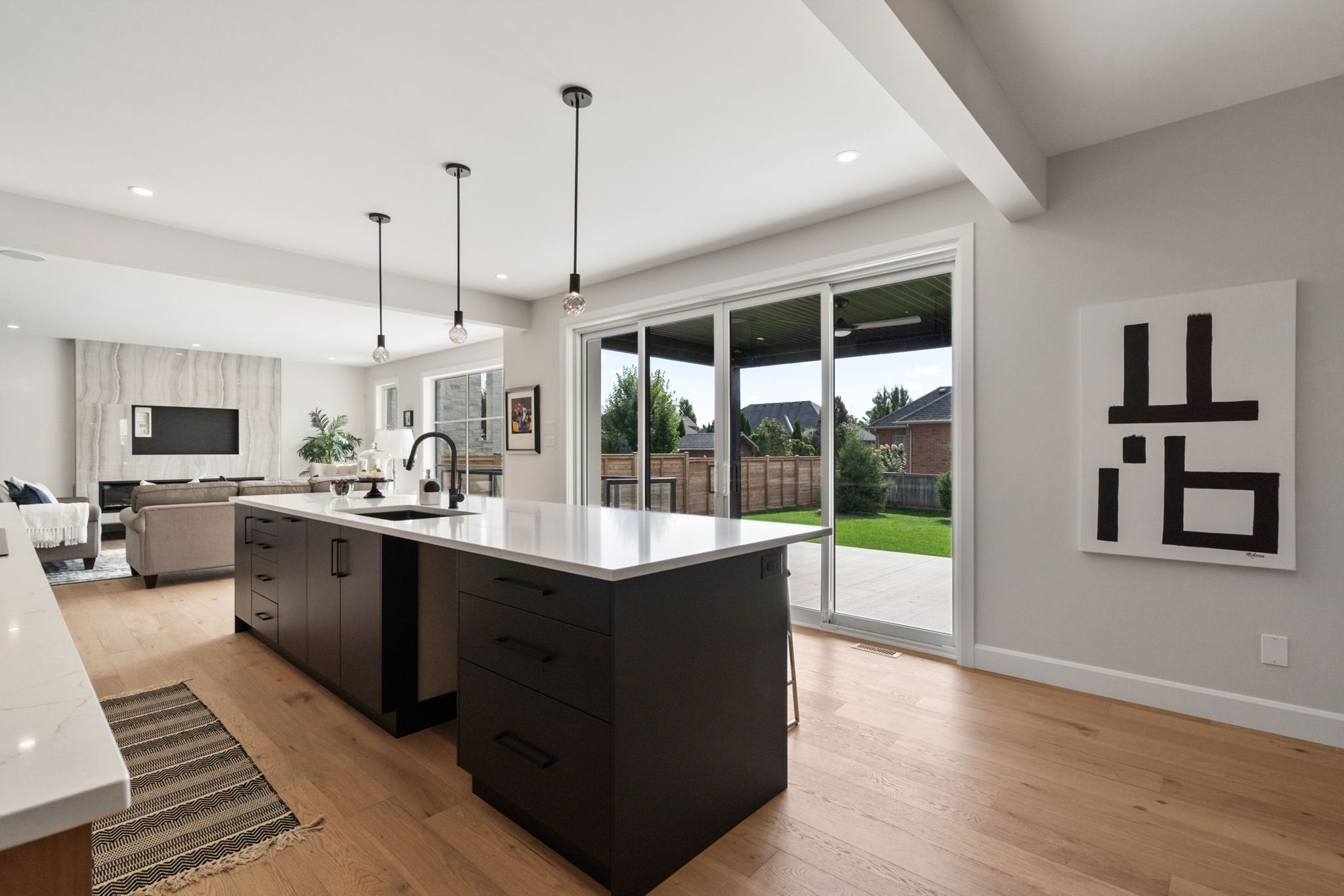 What discerning buyers expect from harasym developments is a bold design vision brought to life with precision, and this to-be-built residence delivers. Poised on a premium lot in edgewater estates, this 3-bedroom executive bungalow blends architectural elegance with thoughtful functionality. Enjoy tranquil views of edgewater pond framed by floor-to-ceiling windows, vaulted ceilings, and a walkout to a deck for seamless indoor-outdoor living. The chef-inspired kitchen includes custom cabinetry, stone counters, and a large pantry, flowing into an expansive great room perfect for entertaining. White oak stairs with a glass railing add a modern touch, while the spacious primary retreat features a walk-in closet and spa-worthy 5-piece ensuite. A stylish jack & jill bathroom connects two additional bedrooms. With nearly 3,000 sq ft above grade, an unfinished walkout basement, and a quiet, upscale setting just minutes from london, this home offers a rare opportunity, refinement, and the promise of peace. Welcome to edgewater estates in komoka.