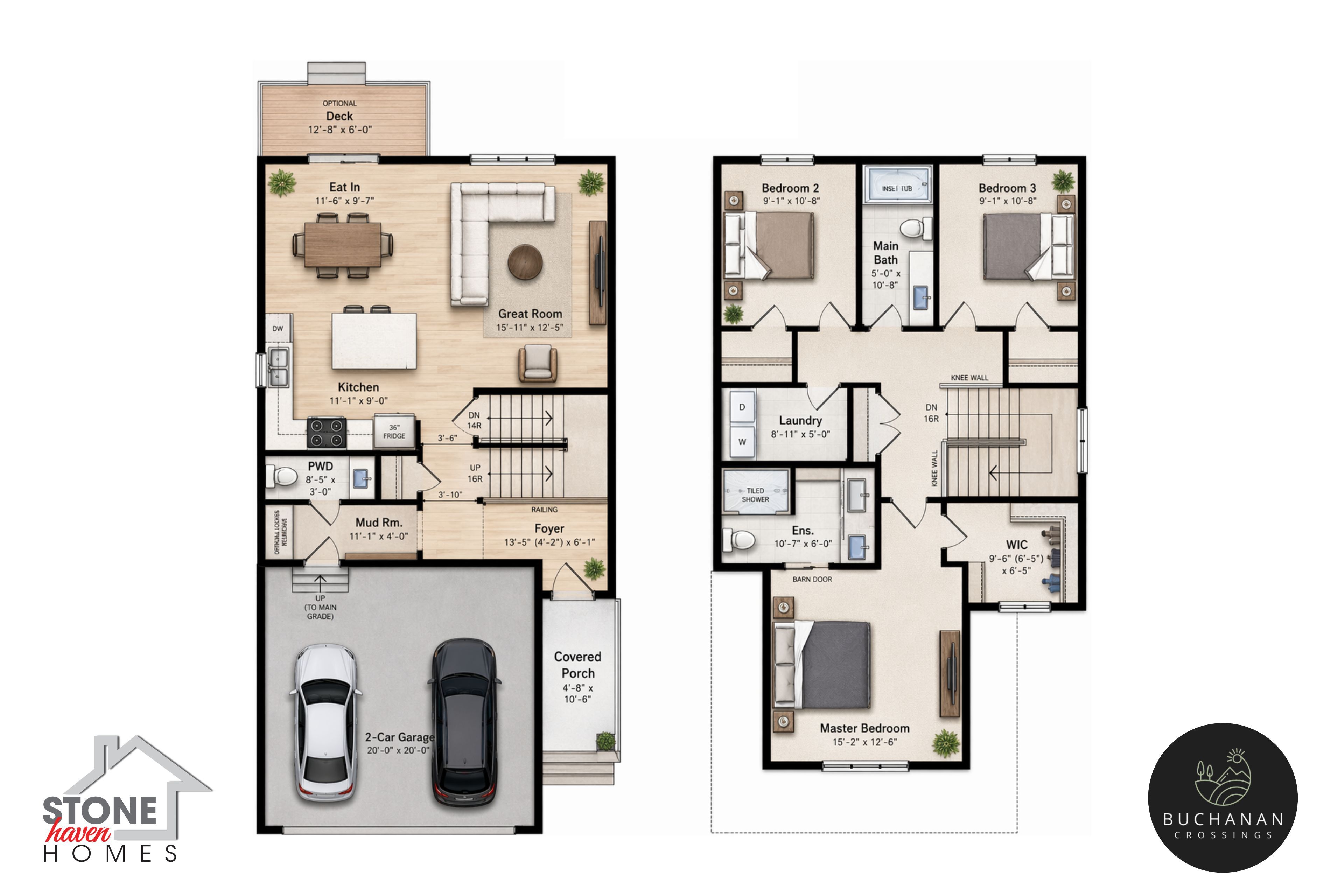 Buchanan crossings in strathroy is quickly gaining attention as one of the area's most up-and-coming communities--offering your opportunity to get in early and secure your place as it continues to grow. Introducing the harborview, a thoughtfully designed 2-storey home by trusted builder stonehaven homes. Offering 3 bedrooms, 2. 5 bathrooms, and 1,573 sq ft, this home pairs smart design with curb appeal, featuring a brick and vinyl exterior, covered front porch, and attached 2-car garage. The main floor is designed to feel open, connected, and easy to live in. The kitchen anchors the space with stainless steel appliances, a central island with breakfast bar seating, and direct sightlines into the dining and living areas--ideal for both daily routines and hosting. Sliding doors off the dining area lead to the backyard, while large windows bring in natural light throughout. A 2-piece bathroom and practical mudroom with garage access complete the level. Upstairs, the layout continues to deliver. The primary bedroom offers a walk-in closet and a private 4-piece ensuite, creating a comfortable retreat at the end of the day. Two additional bedrooms, a full 4-piece bathroom, and a dedicated laundry room keep everything right where you need it. The lower level is unfinished, giving you a blank canvas to create additional living space, a home gym, rec room, or whatever fits your lifestyle. Out back, you'll find a generous yard with room to enjoy, whether that's outdoor dining, kids at play, or space for pets--with the option to add a deck. Located just minutes from shopping, parks, schools, amenities, and strathroy middlesex general hospital, this is your opportunity to step into a well-built home by stonehaven homes in one of strathroy's newest communities. *to be built*