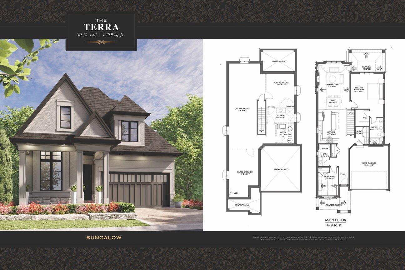 Welcome to terravita subdivision, one of niagara falls' most exclusive new communities. This beautiful bungalow design by kenmore homes offers elegant one-floor living with 2 bedrooms, 2 full bathrooms, and a bright, thoughtfully designed interior that feels both refined and comfortable. Wide-plank flooring, soaring vaulted ceilings,12 potlights, and quartz countertops, create a modern, upscale feel throughout. An open-concept kitchen layout anchors the home flowing seamlessly into the living and dining area. The primary bedroom features a beautiful ensuite with glass shower and tile detailing, while the second bedroom also benefits from vaulted ceilings, adding to the spacious feel of the home. Main-floor laundry, a covered rear patio, and a low-maintenance backyard further enhance the ease of everyday living. The unfinished basement adds approximately 1,450 sq ft of additional space, ready to be customized to suit your needs. Located near walking trails and just minutes from golf, wine country, restaurants, and everyday conveniences, this home is perfectly suited for those looking to simplify without compromise. This list price includes a $70,000 limited-time builder promotion. (**list price shown is inclusive of the hst, net of applicable hst rebate(s), assuming the buyer qualifies and assigns such rebate(s) to the builder/vendor on closing. If not, the unavailable rebate(s) shall be payable by the buyer in addition to the purchase price on closing.) this home is to be built.