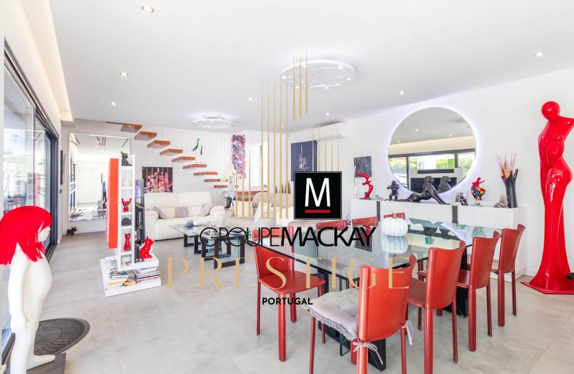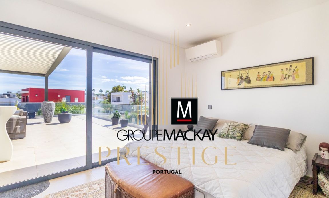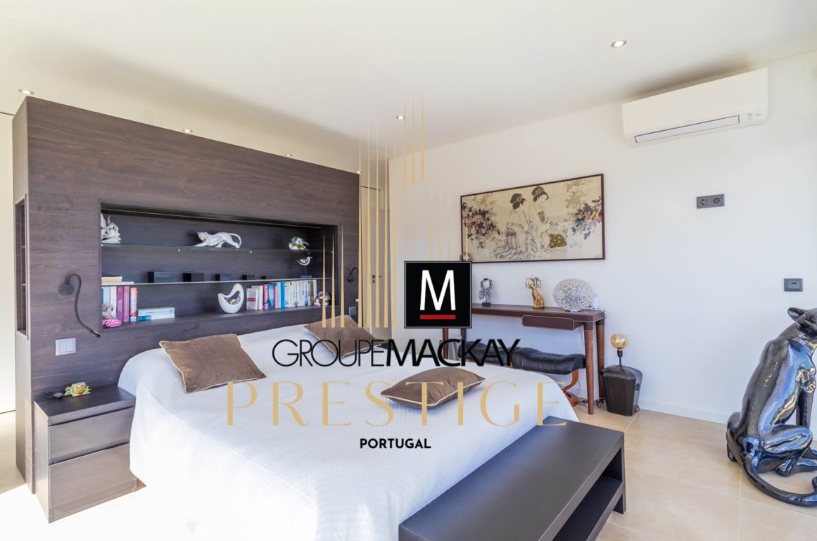 This elegant villa with a modern design offers luxury, comfort and efficiency, located just minutes from the beaches of armação de pêra and within walking distance of golf courses and all amenities. Key features:3 spacious suites, one on the ground floor and two on the ground floor with south-facing terrace. Large living and dining room with fireplace and direct connection to the garden. Fully equipped kitchen with modern appliances. Basement/garage with about 100 m, with storage and laundry. Swimming pool, jacuzzi, garden with automatic irrigation, barbecue area and solarium. Extras: central air conditioning, electric towel rails, electric shutters, double glazing, solar panels, alarm system and video surveillance. Built in 2021, with class b energy certification. Benefits:contemporary architecture that favours natural light and comfort. Strategic location between the countryside and the sea. Ideal as a permanent residence, holiday home or safe investment in the algarve.