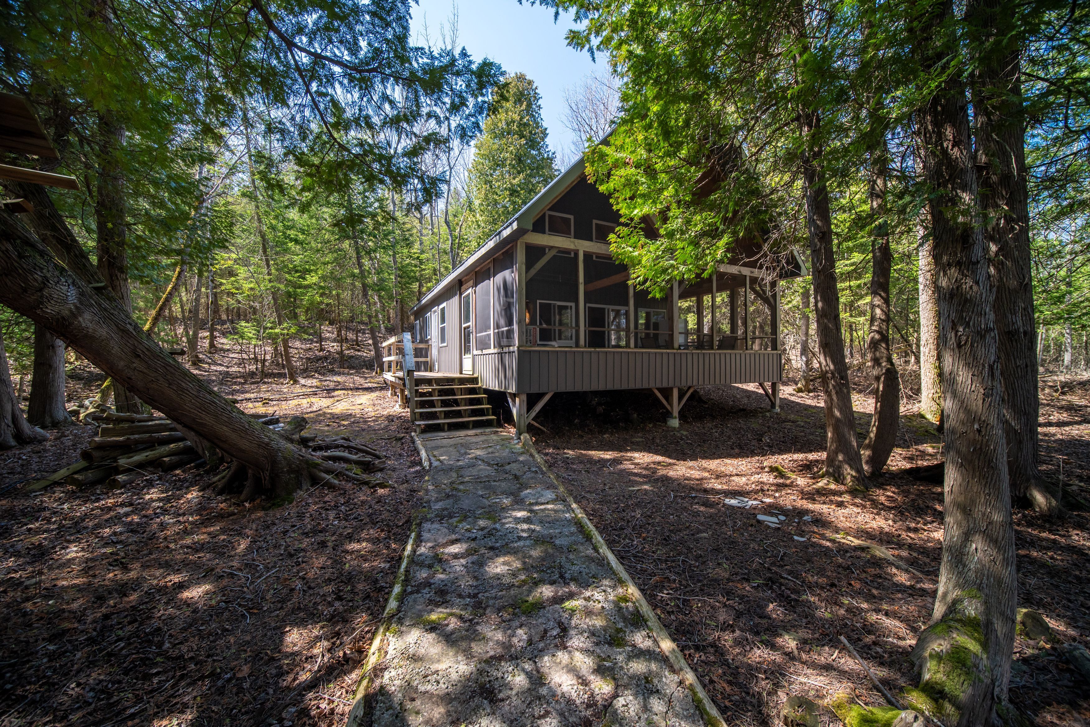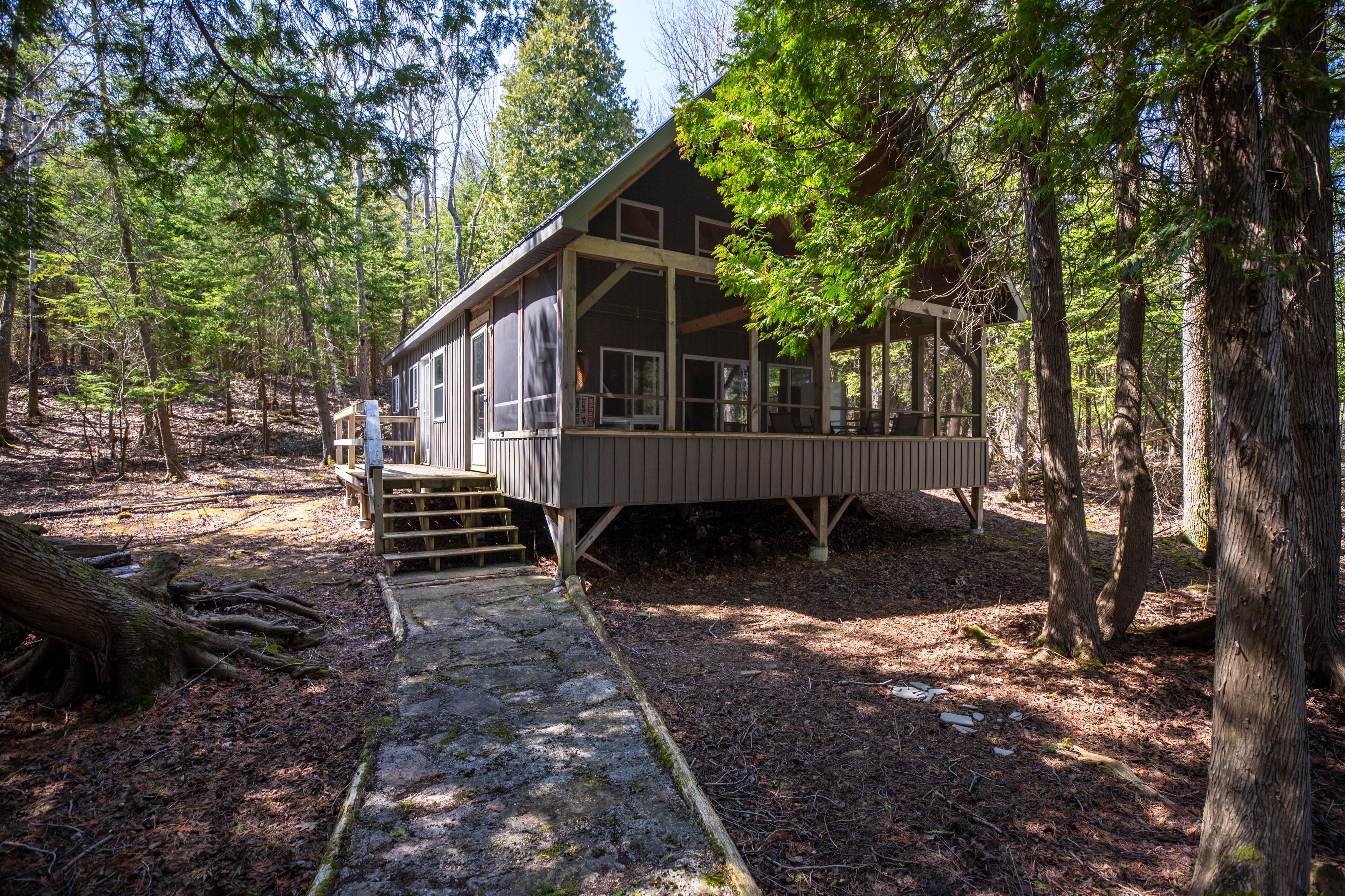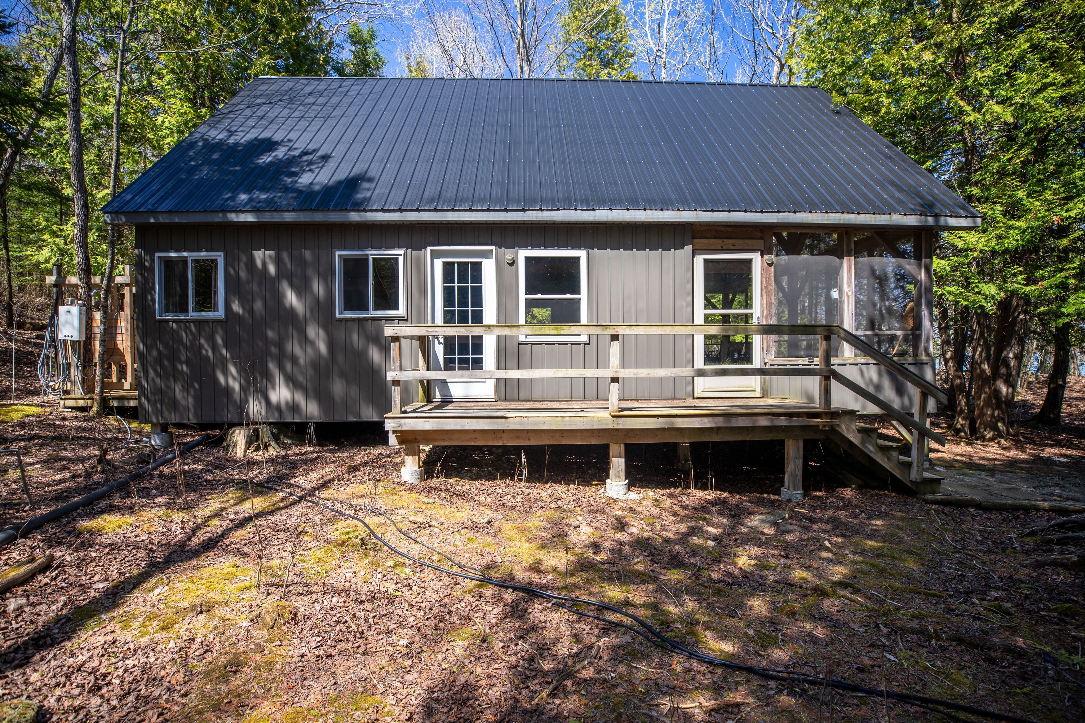 About 10 minutes out from big bay, things start to shift. The noise drops off, the water opens up, and you're reminded why people look for places like this in georgian bay, not just for waterfront, but for the space and privacy that come with it. Set along the east side of white cloud island, this 12-acre property offers over 330' of classic georgian bay shoreline, with clear deep turquoise water and a level of privacy that's getting harder to find. The chalet-style cabin, built in 2011, is simple, solid, and charming. At 24' x 36', it includes a functional kitchen, main floor bedroom, living room, loft for extra guests, and a wood stove. The screened-in timber frame porch is a great space for dinners and gathering after a day on the water. All 12 acres are usable, with established trails through forest, rock, and elevation. Around the cabin, tree cover provides a tucked-away feel, while trails lead up along the escarpment to open fields where wildlife is common and the setting feels removed. The surrounding islands offer excellent fishing, along with plenty of swimming and exploring. Mornings bring direct sunrises over the bay, while evenings finish with a glow across the water and quiet nights-no background noise, just the fire, water, and open sky. Off-grid setup includes lake-fed water with a jet pump, indoor 2-piece washroom, and outdoor hot water shower. Fully wired; power runs off a generator and could be converted to solar. No septic system. Not a short-term rental or luxury-style cottage, but a comfortable, functional retreat for someone who values privacy and simplicity. A strong option for someone looking for private waterfront with room to explore and a setting that feels genuinely removed, without being difficult to access. With a 42-foot dock and 80-foot marine rail, just bring your boat, it is being sold fully furnished and ready to use. You'll never forget your first time to white cloud island!