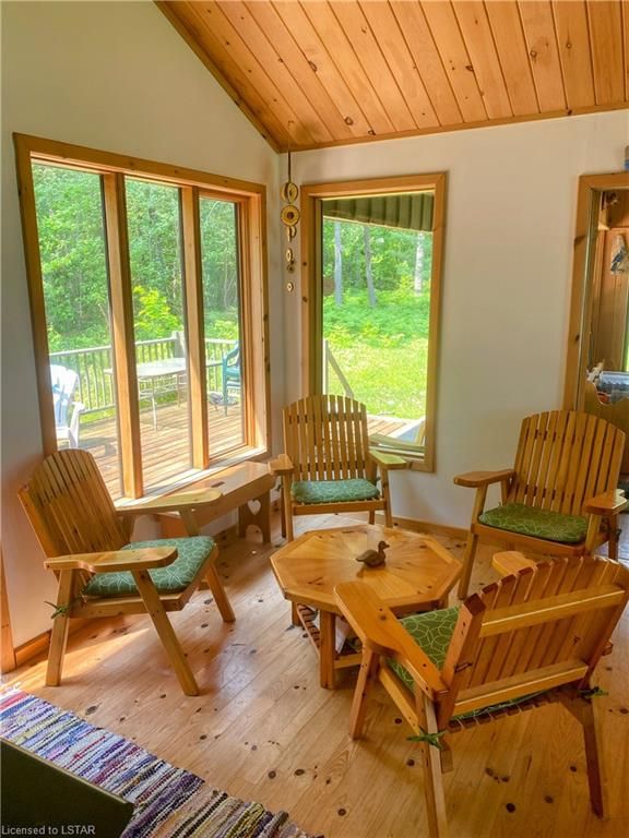 Located on the north east side of sandy island on lake nipissing, directly south of sturgeon falls. Family friendly, turnkey retreat with 200 feet of safe sandy beach. Just bring your bathing suit and food. Great for swimming, fishing and boating. Good docking. Walkable lot with blended forest (not rocky). Modern 3 bedroom insulated open concept cottage 1536 sq. Ft. Sleeps 8 plus a bunky. 3 piece bathroom, utility room, large sun room/dining area, open kitchen and living room area with cathedral ceiling throughout and a large deck. Propane appliances with hot water. Gravity fed water system. Generator. Approved legal septic. Sleep cabin approx 280 square feet with ensuite bathroom and deck. Out house, fire wood, shed, workshop, storage shed. 20-25 minutes from starlight marina. A fantastic place for summer and winter is waiting for you! Opportunity for additional adjacent lot 24, 2. 4 acres, sand beach with a rock point, level building lot for second dwelling or for additional privacy.
