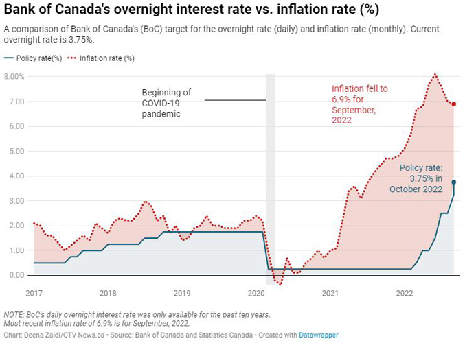 It is no secret what the Bank of Canada has been doing since March in an effort to curtail inflation. Today the bank of Canada has raised their overnight key rate for the sixth time, another 50 basis points, to bring the rate to 3.75%. This will continue to effect Windsor and the local real estate market as buyers and homwowners grapple with the increase.