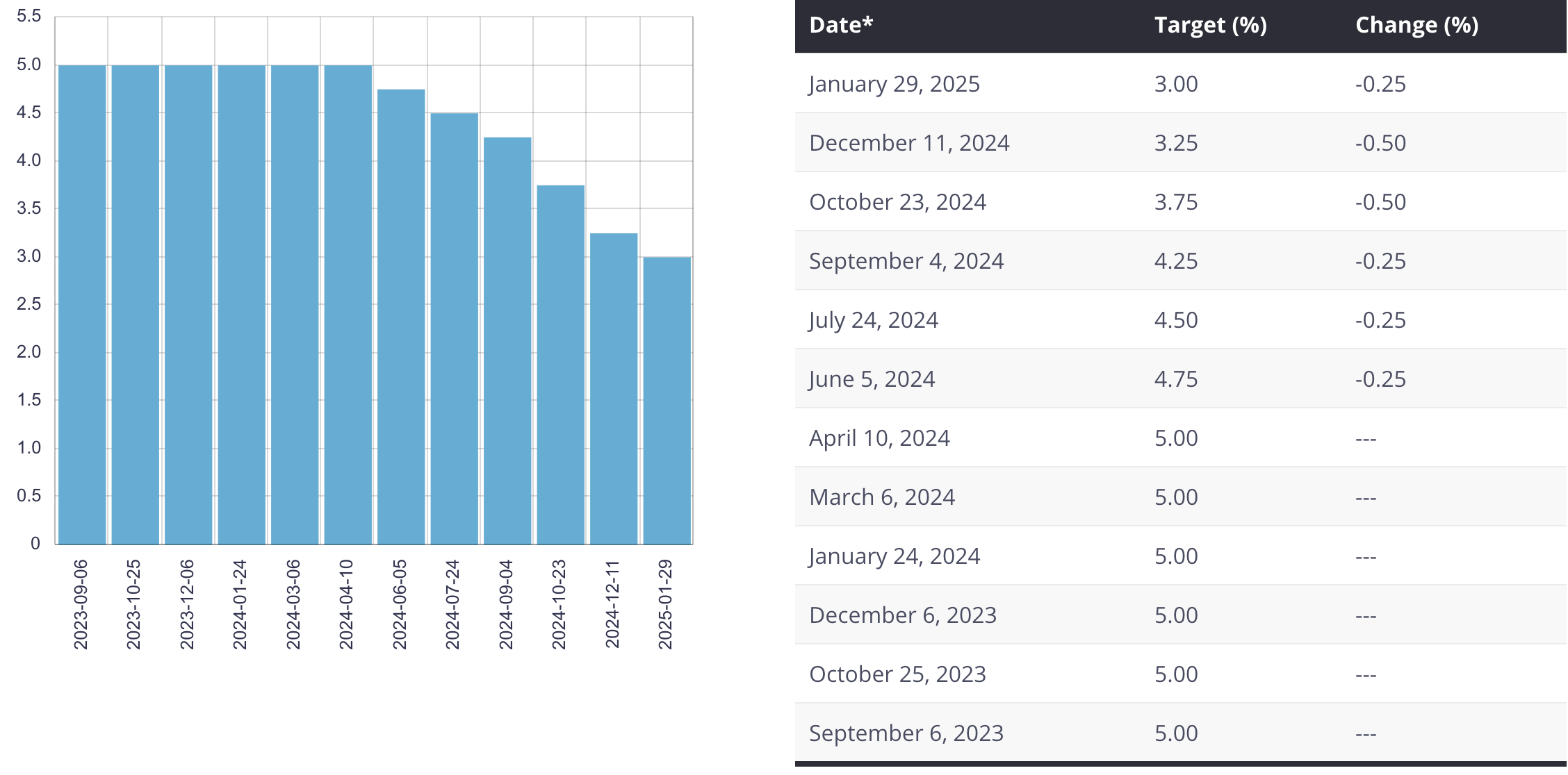 Make it six in a row. After five consecutive rate cuts to end 2024, the Bank of Canada has dropped their key rate once again to begin 2025. In their announcement today, Canada's central bank reduced the rate by 25 basis points bringing their policy interest rate to 3.00%.