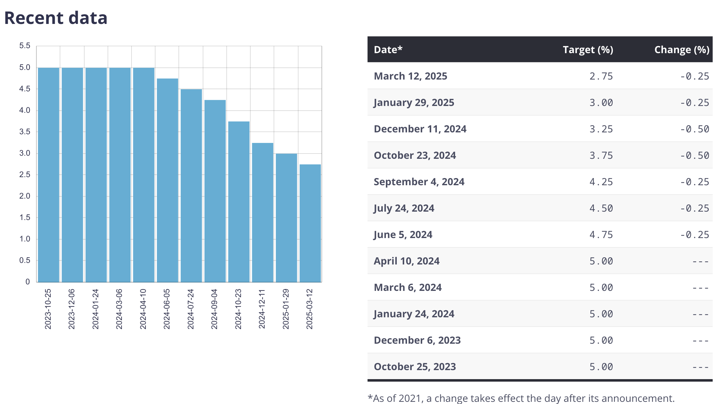 The Bank of Canada announced today it's second consecutive 25 basis point decrease, and 7th consecutive decrease overall as Canada find itself combating tariffs in the early stages of the trade war with the United States. Today's announcement from Canada's central bank brought it's policy rate to 2.75%.