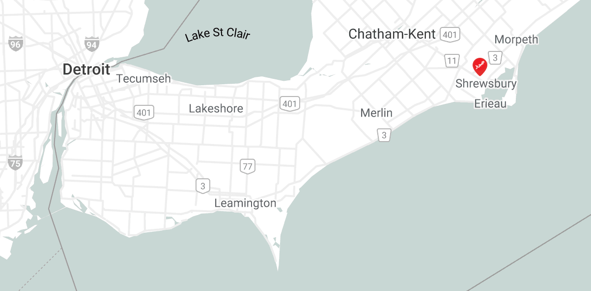 Blenheim is located S/E of Chatham and is readily reached by the 401. It's on the sandy side of Lake Erie, or 30 minutes south of Lake St. Clair's magnificence.