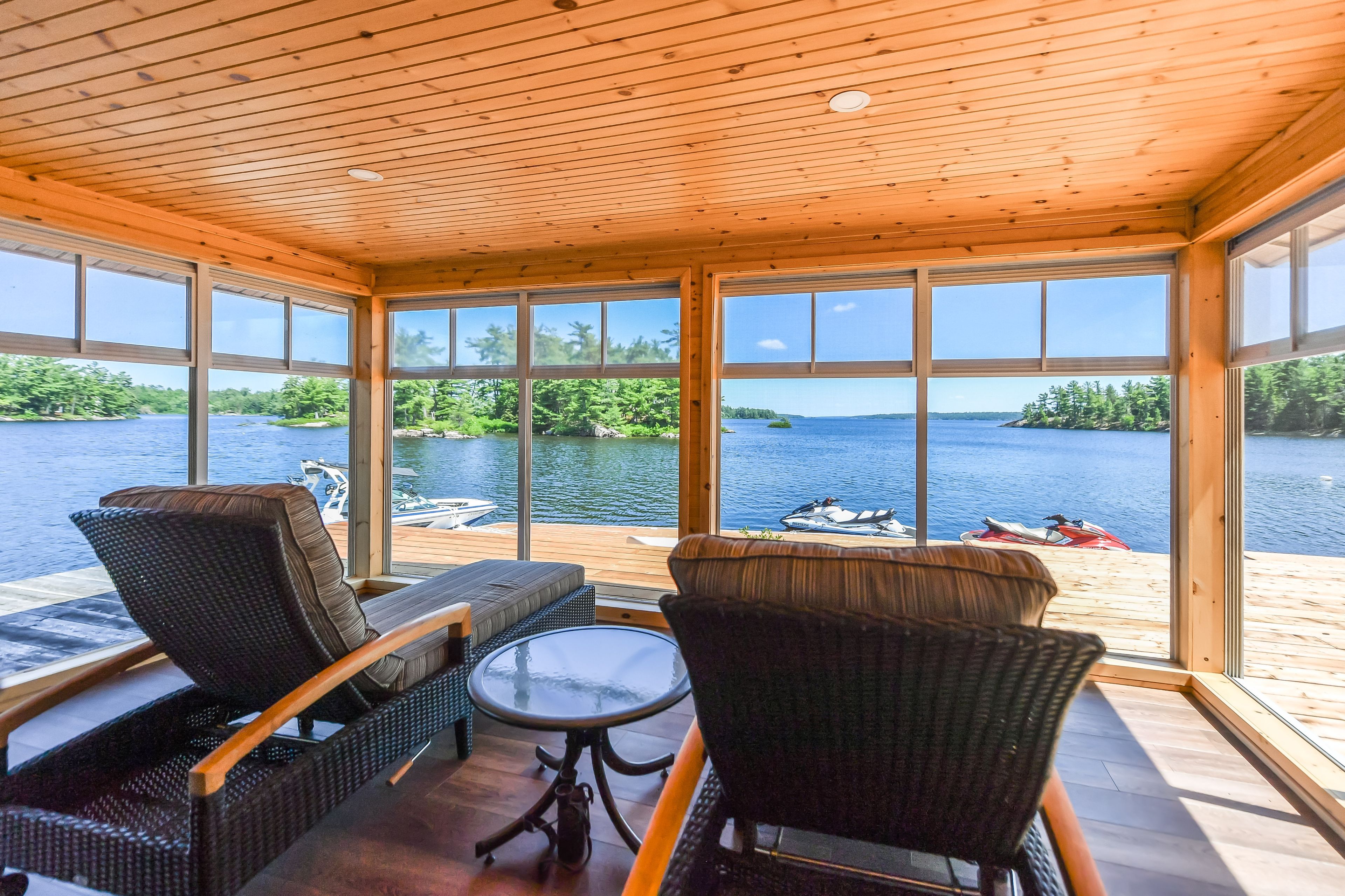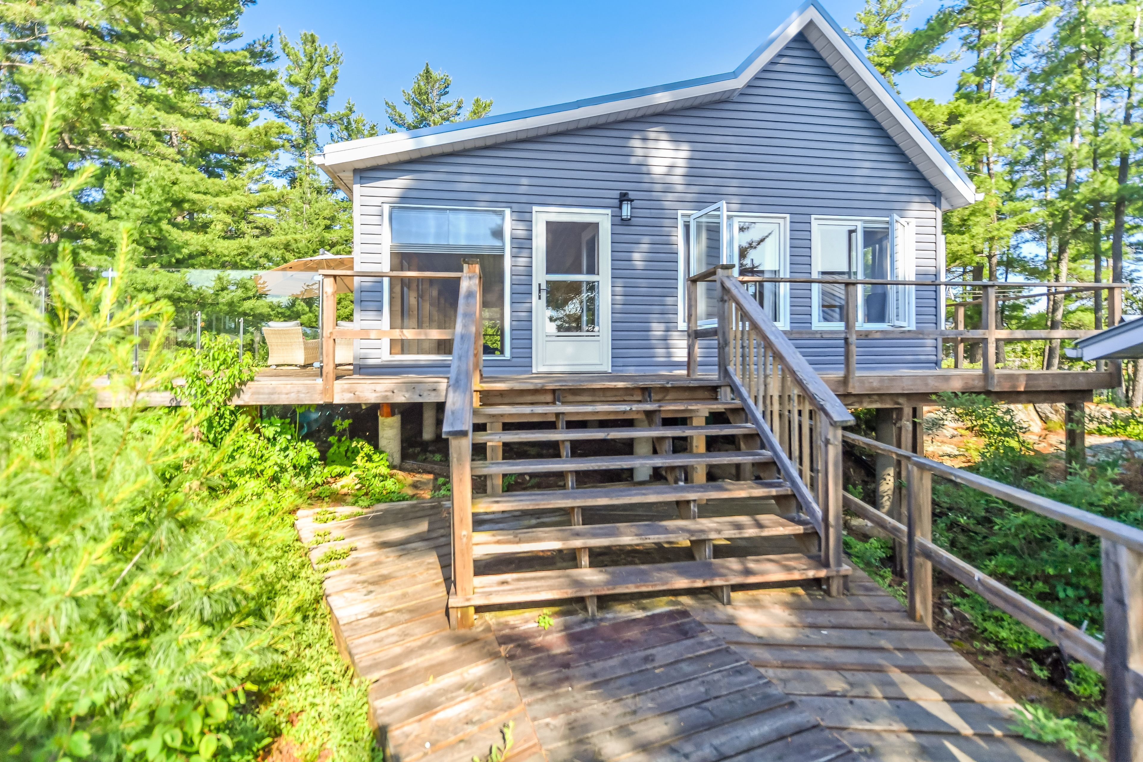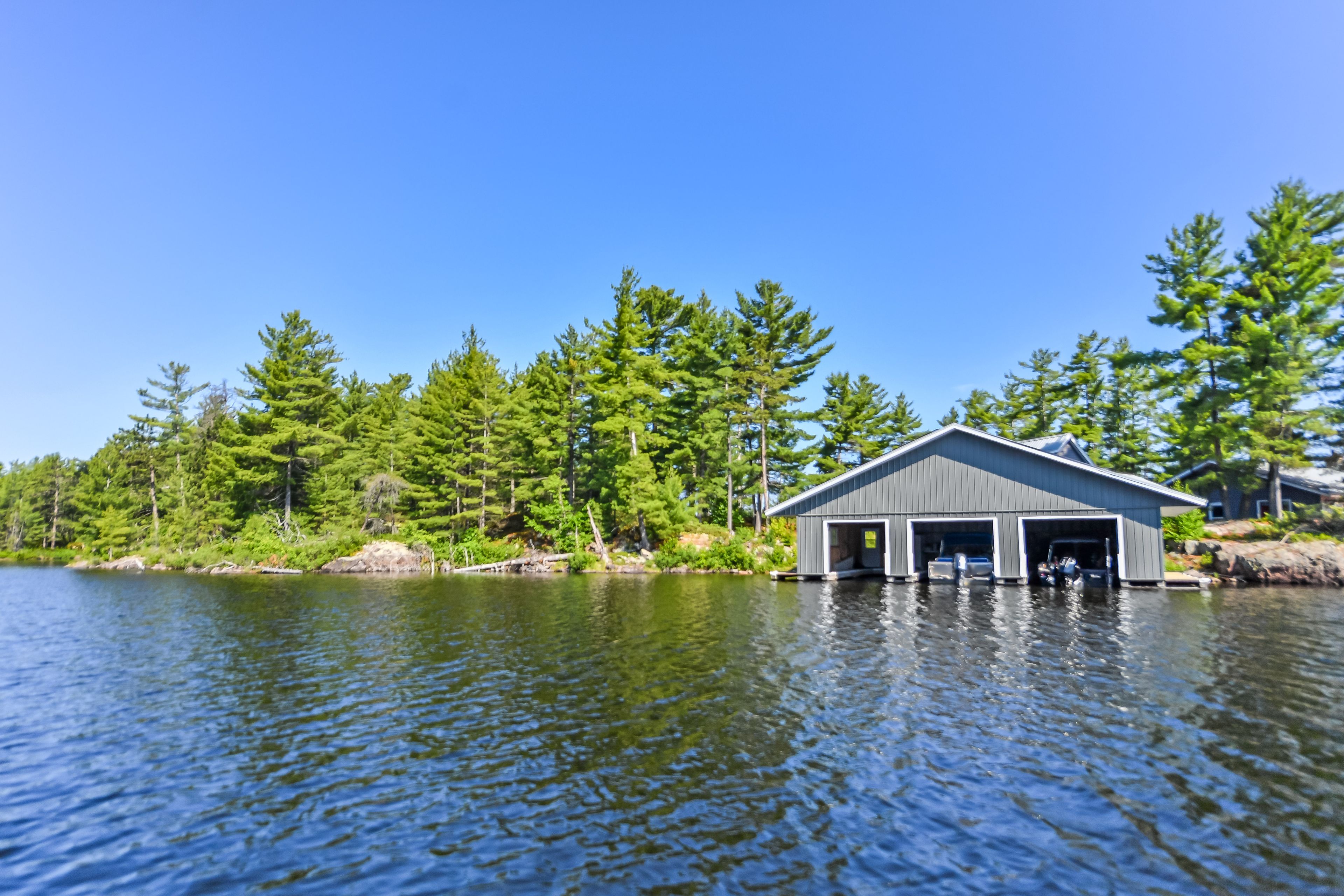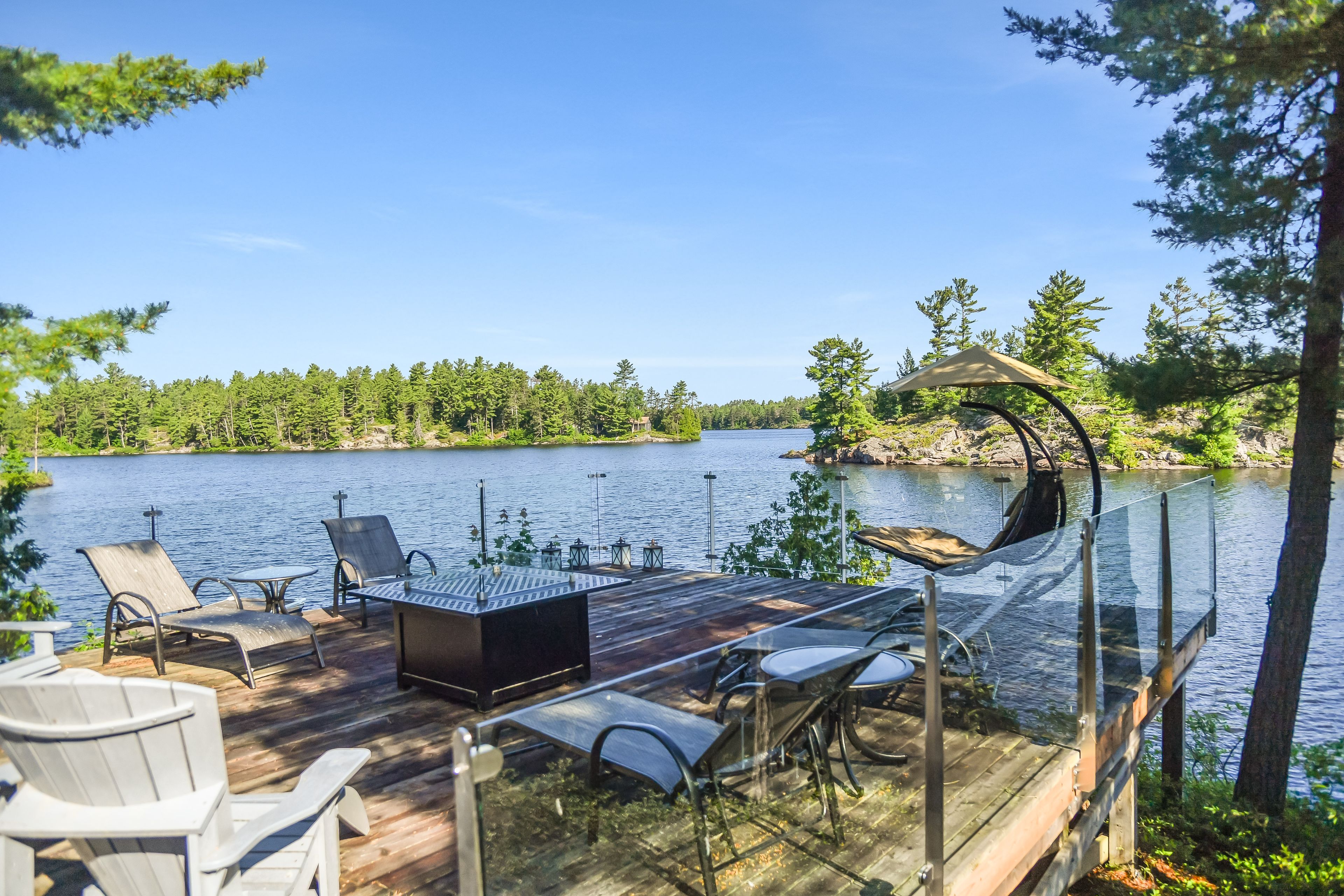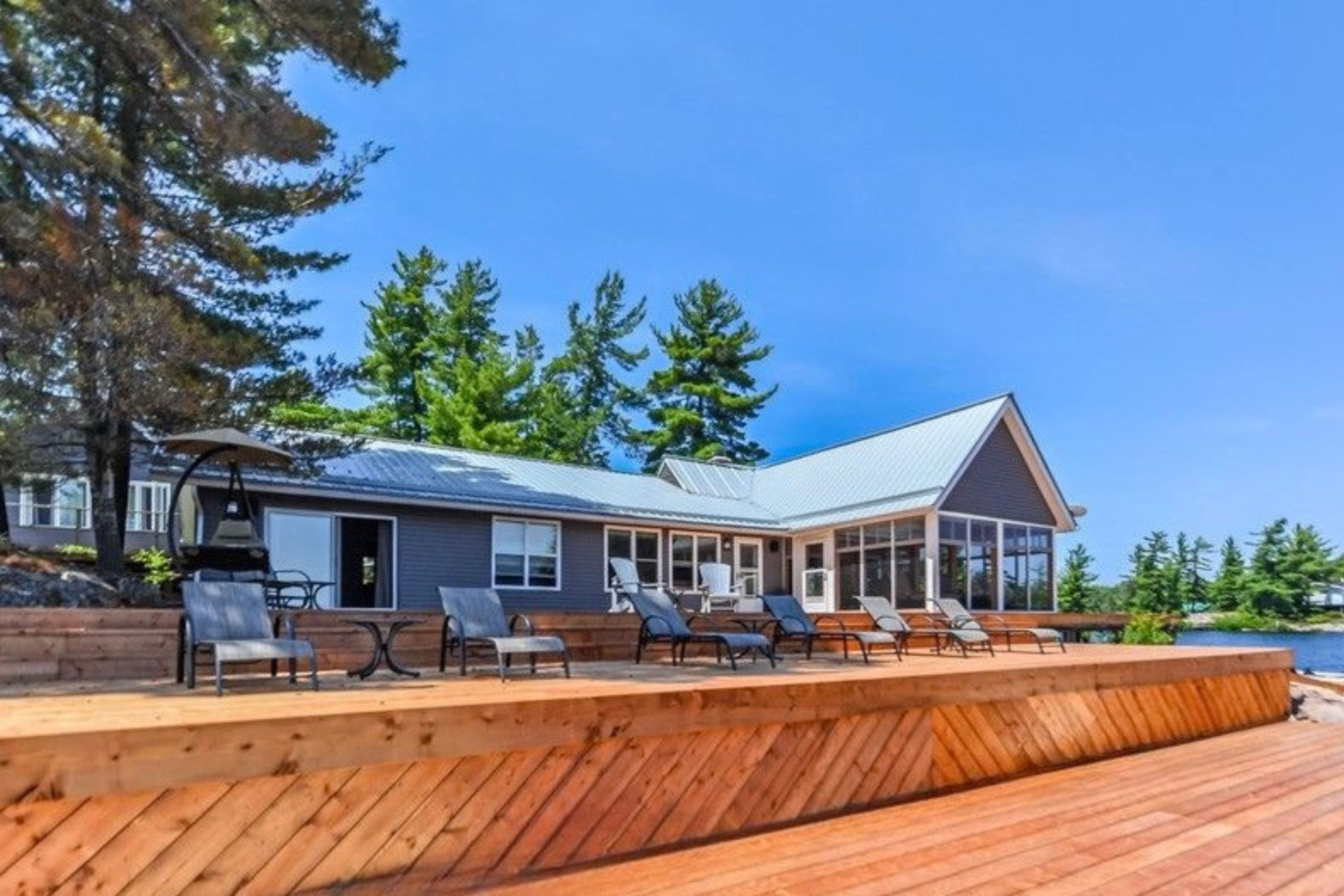 Extremely rare, 100% turnkey - private family island on the storied french river! Just a 10-min boat ride from mainland marinas, this 8-bedroom, 5-acre compound comes fully furnished and summer-ready, offering an updated 4-bed main cottage, a new 2-bed/1-bath guest house and 2 inviting bunkies. The main cottage pairs warm pine interiors with 2023 windows and floors; its primary suite steps onto a rebuilt 3,080 sq-ft deck (2025). The spa-style bath (2024) features a flexstone shower and vaquero rain column, while the entertainers kitchen boasts twin whirlpool fridges, miele dishwasher, unique propane range and 2020 granite counters that flow into a ten-seat dining area and a 2023 sunspace-screened lounge. Two separate seating areas mean plenty of room for board games, socializing and relaxing all at once. The 1,040 sqft guest cabin adds two primary bedrooms with an adjoining 3-pc bath, weatherwall lounge, gym zone and 600-sq-ft glass-railed patio, while the two 168 sqft bunkies (queen + four-bunk) connect by ramp to a two-pc wash house and an 800-sq-ft sunset deck wrapped in invisirail glass. Off-grid living is effortless thanks to a 7. 2-kw lithium solar array (2019) backed by a honda eu7000is generator, dual bosch on-demand water heaters (2022) and trojan uv-max filtration. Equipped with bell landline & high-speed internet capabilities so you can work remotely & stay connected at your convenience. A three-slip boathouse (2021) with liftmaster doors secures your fleet; a stanley aluminum boat and kenmore bait fridge are included. Island-wide vssl audio, wi-fi, electrolux laundry, dyson vacuum and ceiling fans provide home-level comfort. Swim off the deep docks, fish the famed pickerel, watch west-facing sunsets before stargazing beneath unpolluted skies. The privacy is unrivalled with only six cottages in a sq mile - most kept in the same families for generations. Dont miss the opportunity to claim your families legacy summer escape!