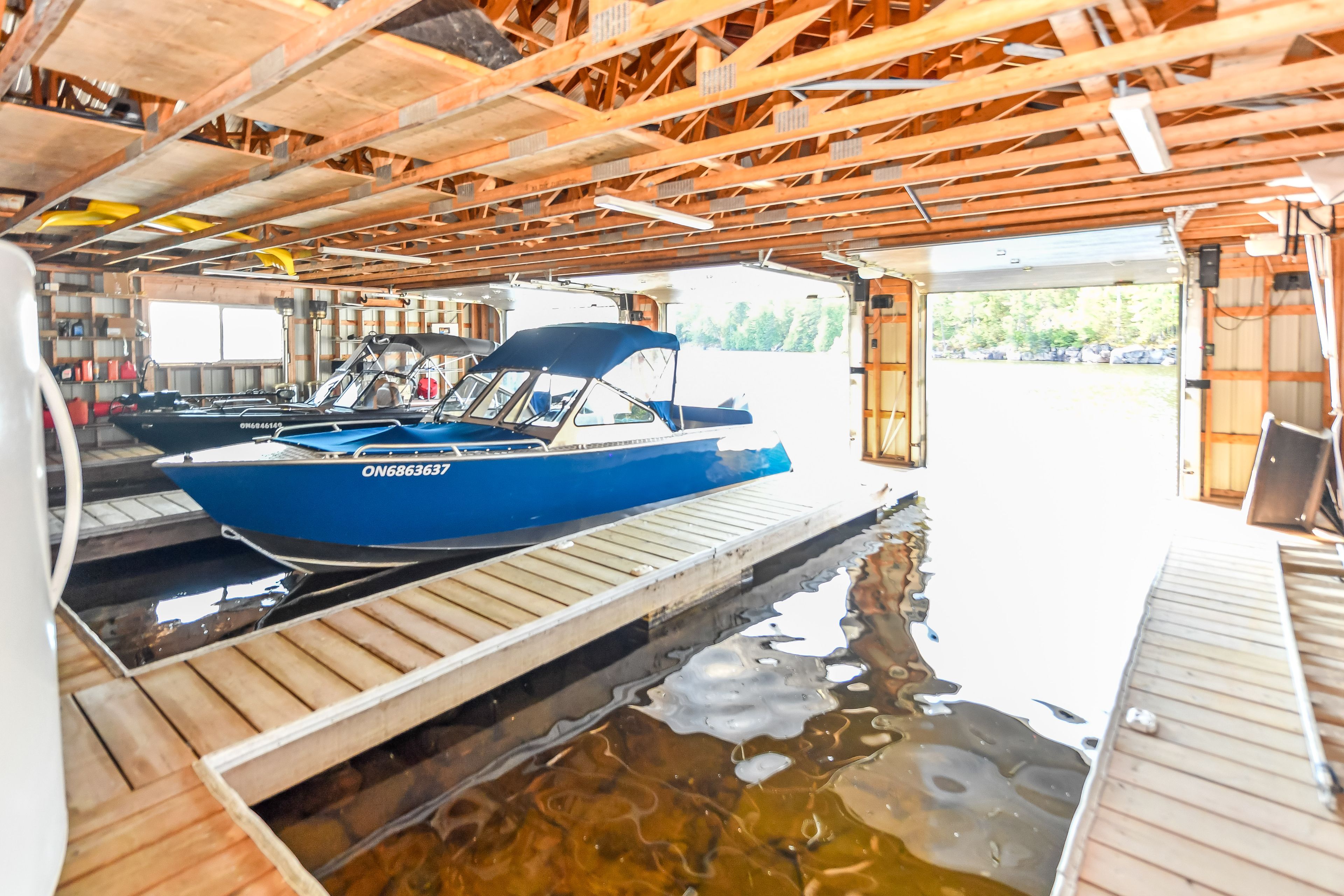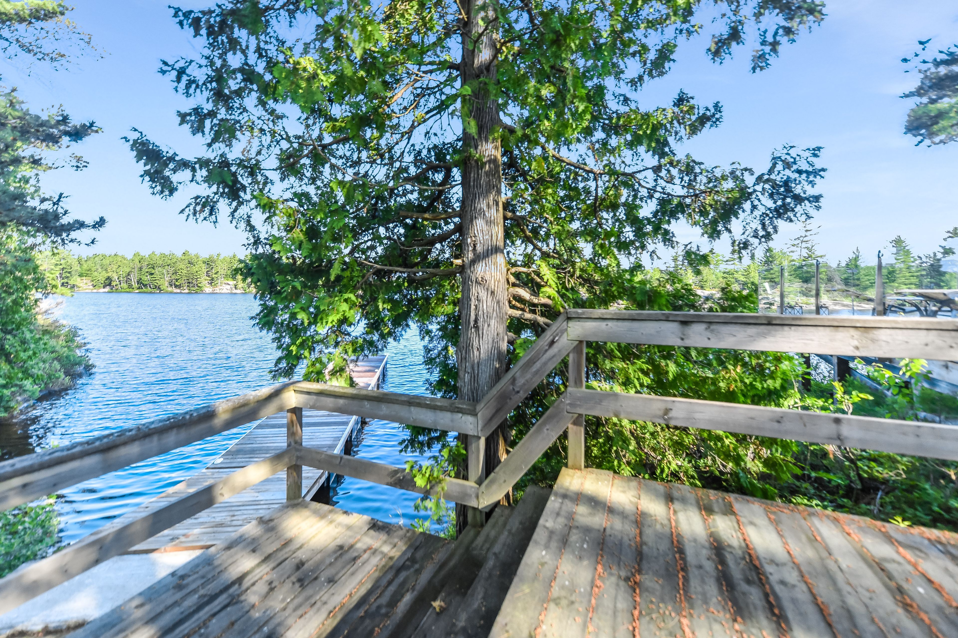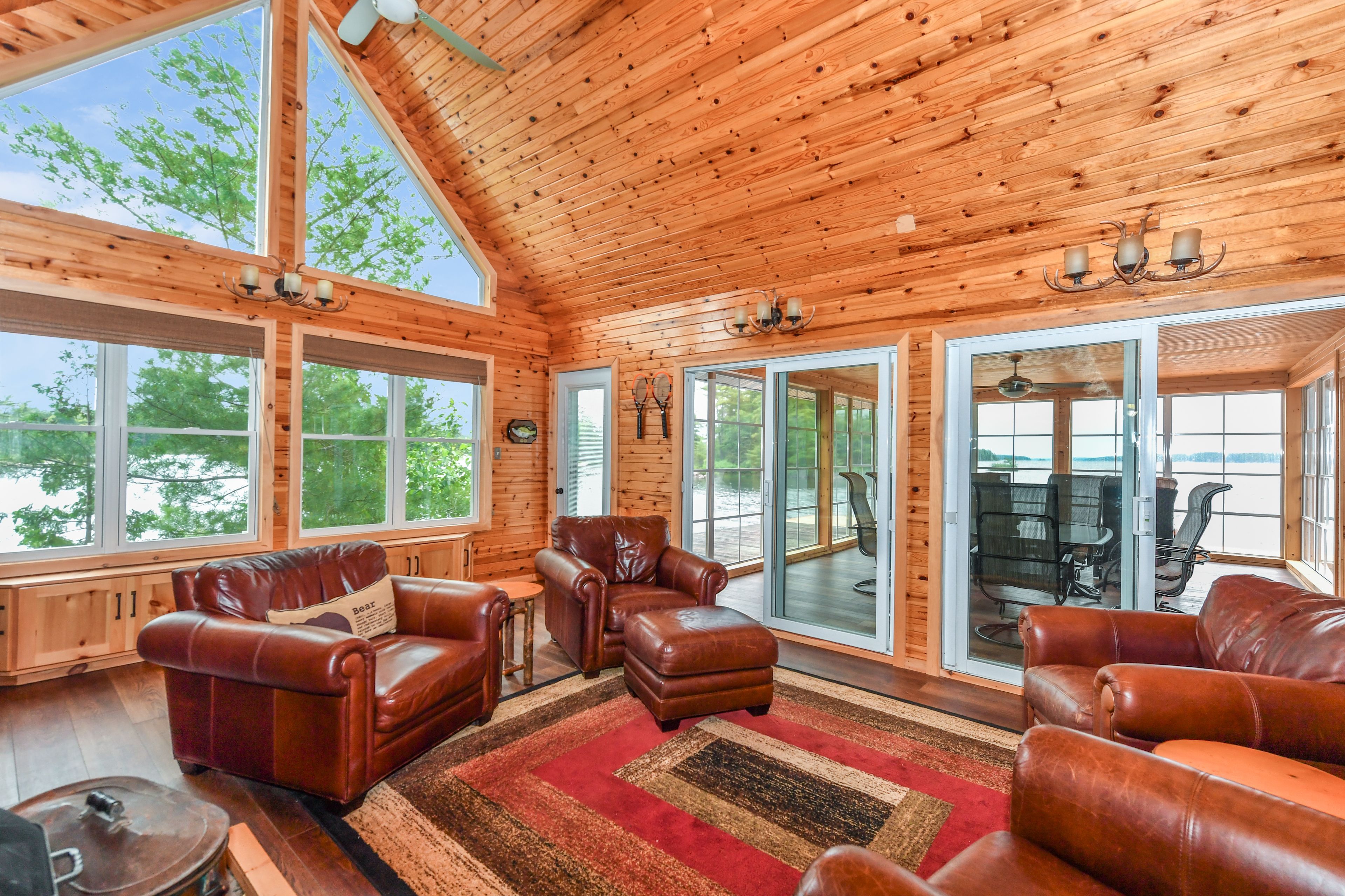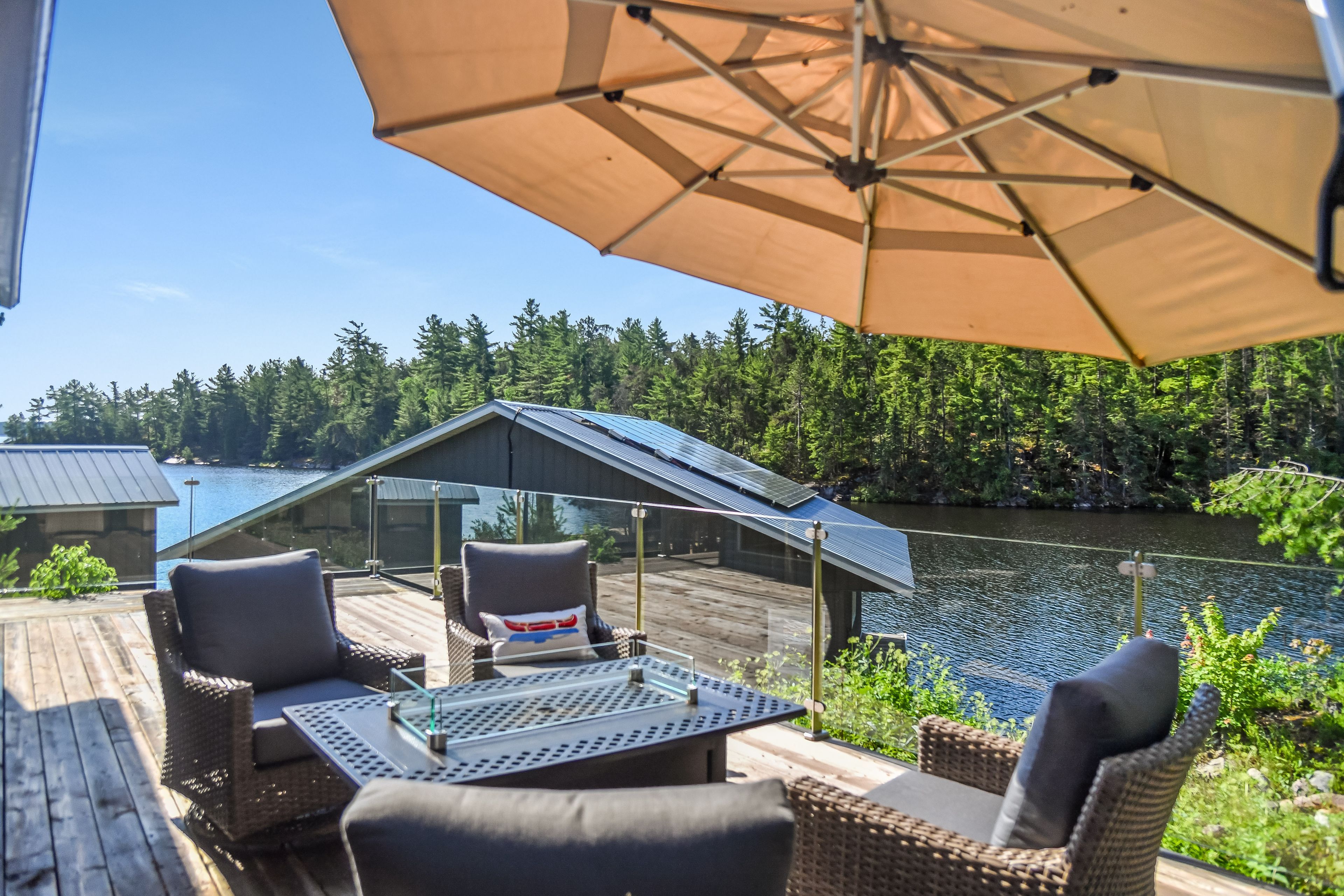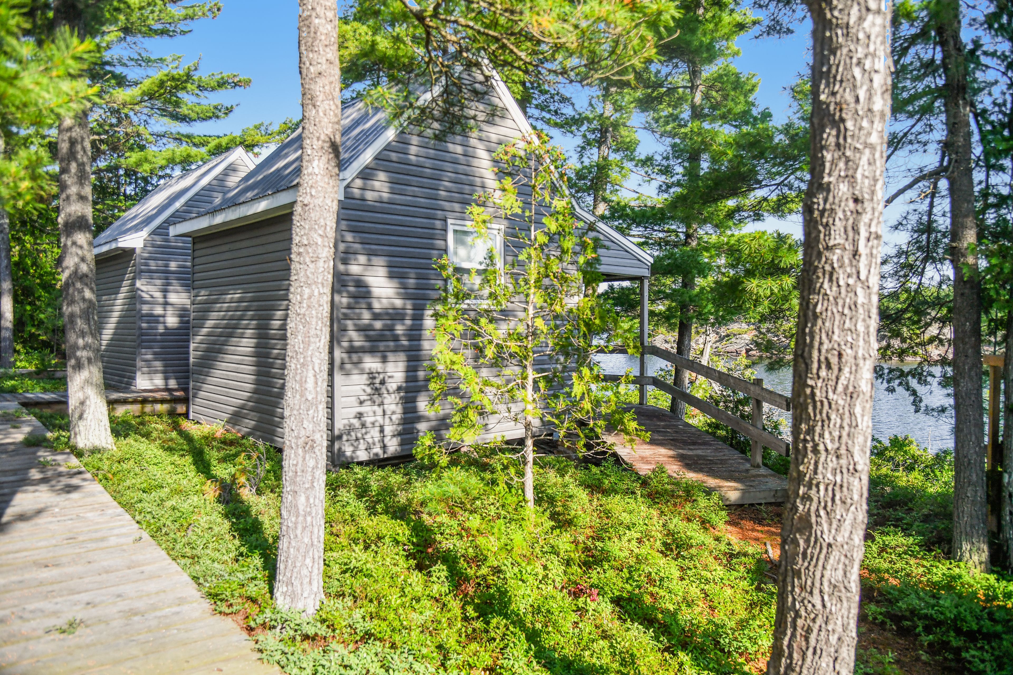 Extremely rare, 100% turnkey - private family island on the storied french river! Just a 10-min boat ride from mainland marinas, this 8-bedroom, 5-acre compound comes fully furnished and summer-ready, offering an updated 4-bed main cottage, a new 2-bed/1-bath guest house and 2 inviting bunkies. The main cottage pairs warm pine interiors with 2023 windows and floors; its primary suite steps onto a rebuilt 3,080 sq-ft deck (2025). The spa-style bath (2024) features a flexstone shower and vaquero rain column, while the entertainers kitchen boasts twin whirlpool fridges, miele dishwasher, unique propane range and 2020 granite counters that flow into a ten-seat dining area and a 2023 sunspace-screened lounge. Two separate seating areas mean plenty of room for board games, socializing and relaxing all at once. The 1,040 sqft guest cabin adds two primary bedrooms with an adjoining 3-pc bath, weatherwall lounge, gym zone and 600-sq-ft glass-railed patio, while the two 168 sqft bunkies (queen + four-bunk) connect by ramp to a two-pc wash house and an 800-sq-ft sunset deck wrapped in invisirail glass. Off-grid living is effortless thanks to a 7. 2-kw lithium solar array (2019) backed by a honda eu7000is generator, dual bosch on-demand water heaters (2022) and trojan uv-max filtration. Equipped with bell landline & high-speed internet capabilities so you can work remotely & stay connected at your convenience. A three-slip boathouse (2021) with liftmaster doors secures your fleet; a stanley aluminum boat and kenmore bait fridge are included. Island-wide vssl audio, wi-fi, electrolux laundry, dyson vacuum and ceiling fans provide home-level comfort. Swim off the deep docks, fish the famed pickerel, watch west-facing sunsets before stargazing beneath unpolluted skies. The privacy is unrivalled with only six cottages in a sq mile - most kept in the same families for generations. Dont miss the opportunity to claim your families legacy summer escape!