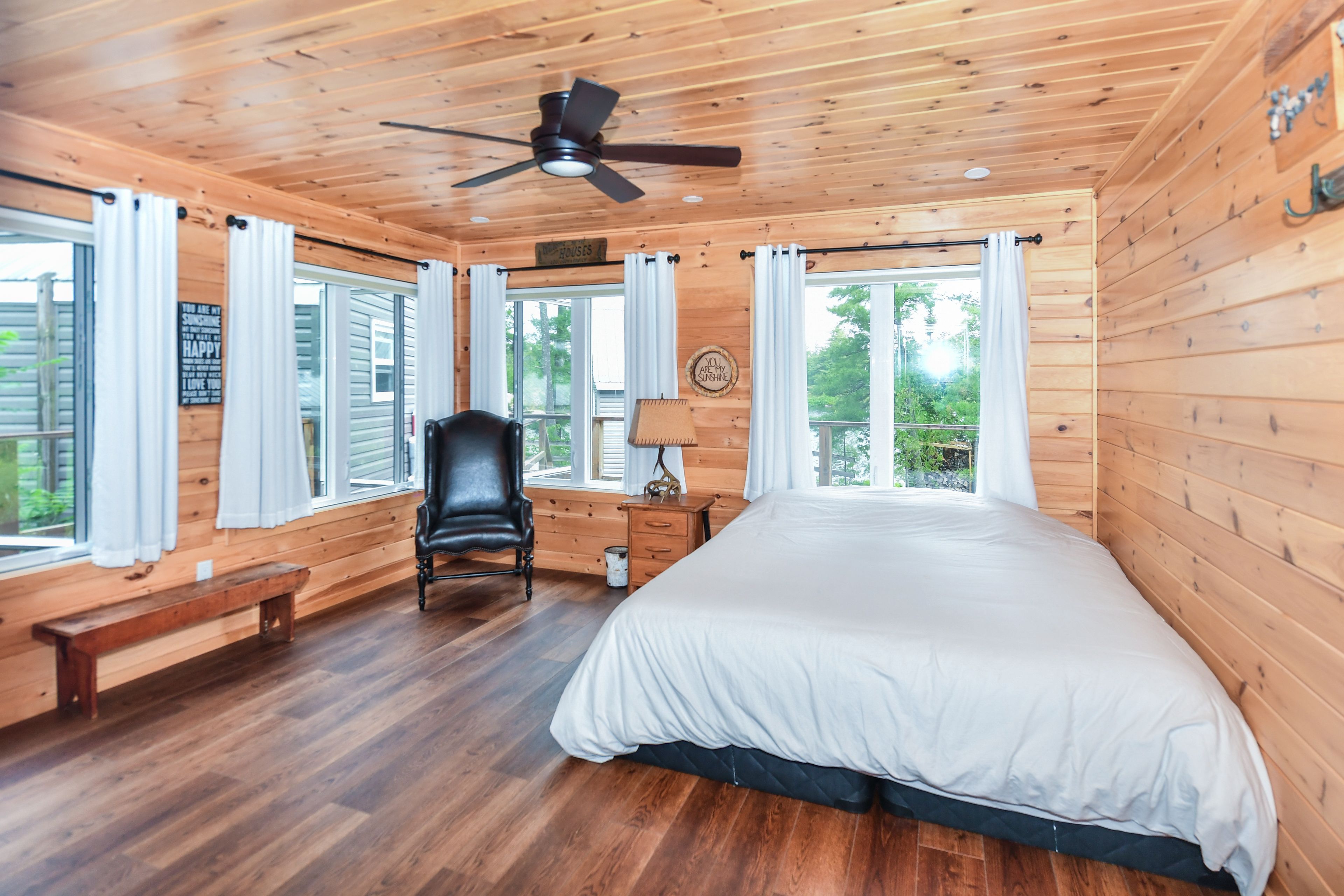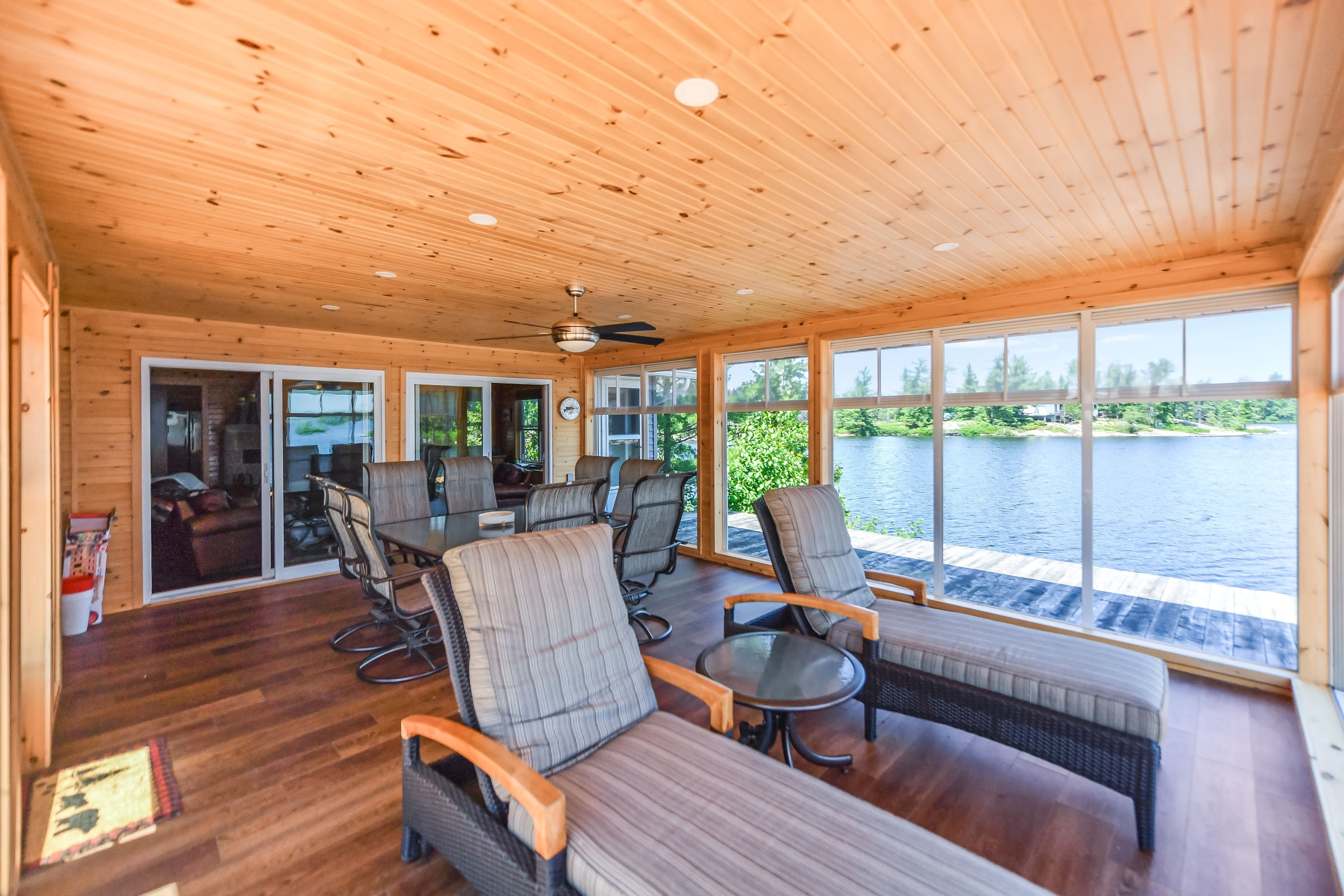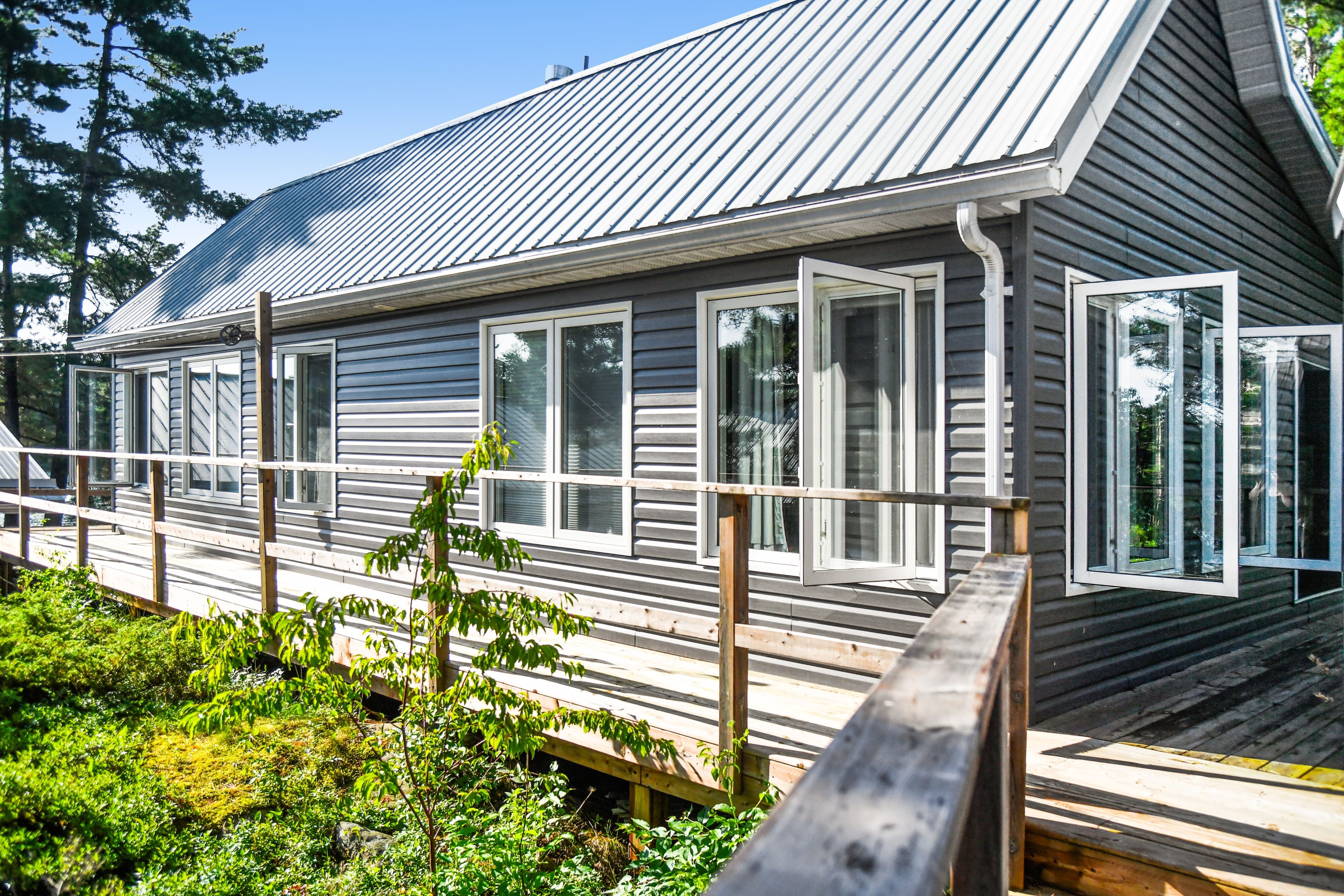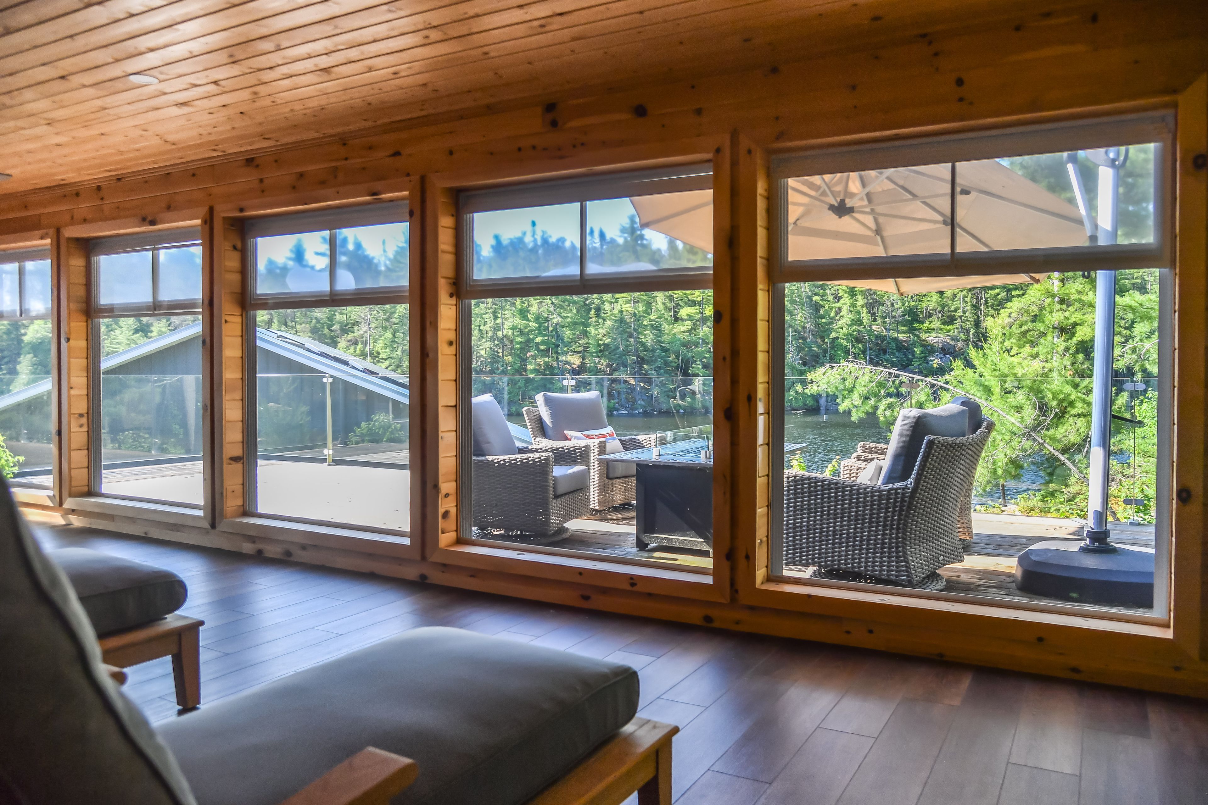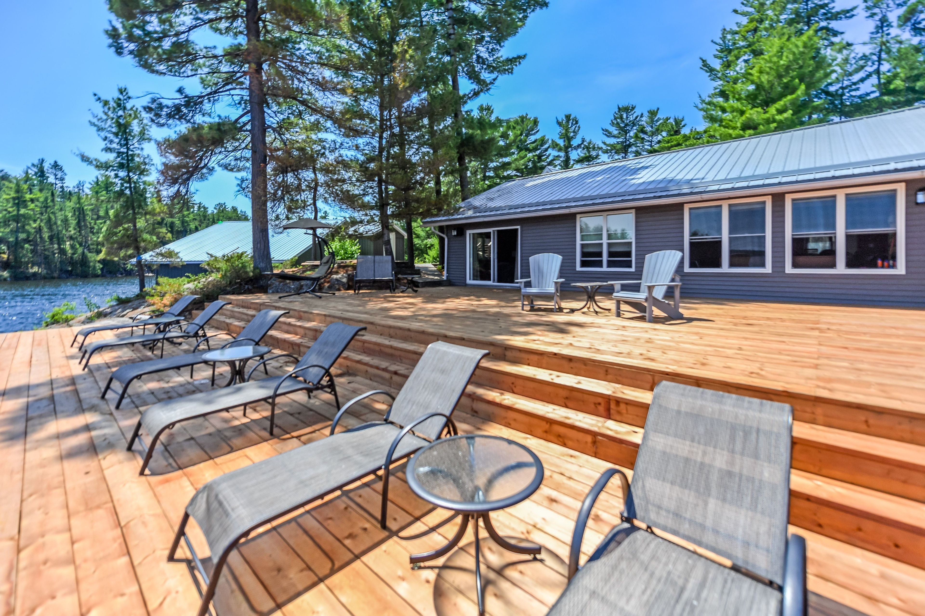 Extremely rare, 100% turnkey - private family island on the storied french river! Just a 10-min boat ride from mainland marinas, this 8-bedroom, 5-acre compound comes fully furnished and summer-ready, offering an updated 4-bed main cottage, a new 2-bed/1-bath guest house and 2 inviting bunkies. The main cottage pairs warm pine interiors with 2023 windows and floors; its primary suite steps onto a rebuilt 3,080 sq-ft deck (2025). The spa-style bath (2024) features a flexstone shower and vaquero rain column, while the entertainers kitchen boasts twin whirlpool fridges, miele dishwasher, unique propane range and 2020 granite counters that flow into a ten-seat dining area and a 2023 sunspace-screened lounge. Two separate seating areas mean plenty of room for board games, socializing and relaxing all at once. The 1,040 sqft guest cabin adds two primary bedrooms with an adjoining 3-pc bath, weatherwall lounge, gym zone and 600-sq-ft glass-railed patio, while the two 168 sqft bunkies (queen + four-bunk) connect by ramp to a two-pc wash house and an 800-sq-ft sunset deck wrapped in invisirail glass. Off-grid living is effortless thanks to a 7. 2-kw lithium solar array (2019) backed by a honda eu7000is generator, dual bosch on-demand water heaters (2022) and trojan uv-max filtration. Equipped with bell landline & high-speed internet capabilities so you can work remotely & stay connected at your convenience. A three-slip boathouse (2021) with liftmaster doors secures your fleet; a stanley aluminum boat and kenmore bait fridge are included. Island-wide vssl audio, wi-fi, electrolux laundry, dyson vacuum and ceiling fans provide home-level comfort. Swim off the deep docks, fish the famed pickerel, watch west-facing sunsets before stargazing beneath unpolluted skies. The privacy is unrivalled with only six cottages in a sq mile - most kept in the same families for generations. Dont miss the opportunity to claim your families legacy summer escape!