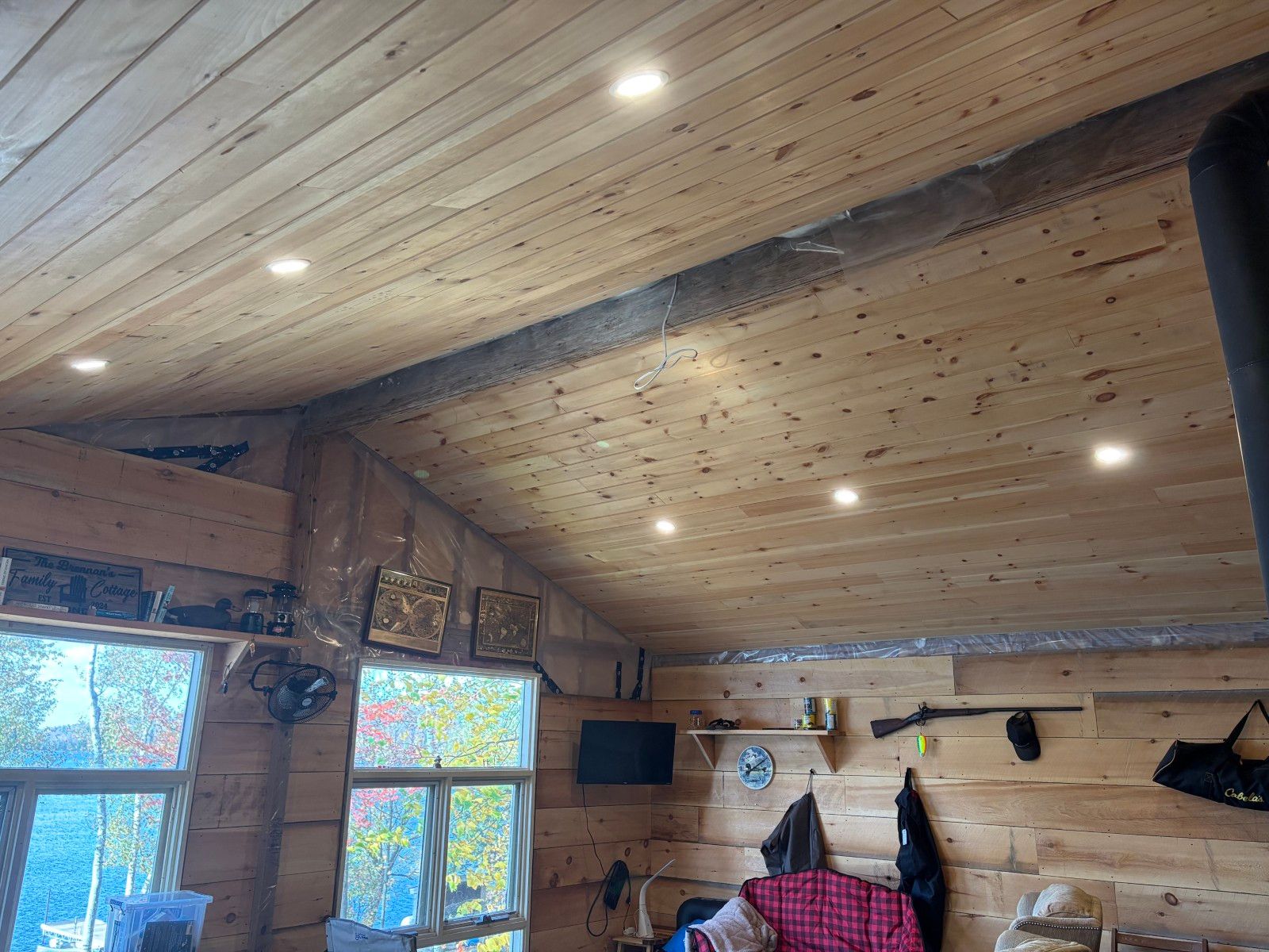 • Rustic open-concept cabin with modern off-grid features and solar system.