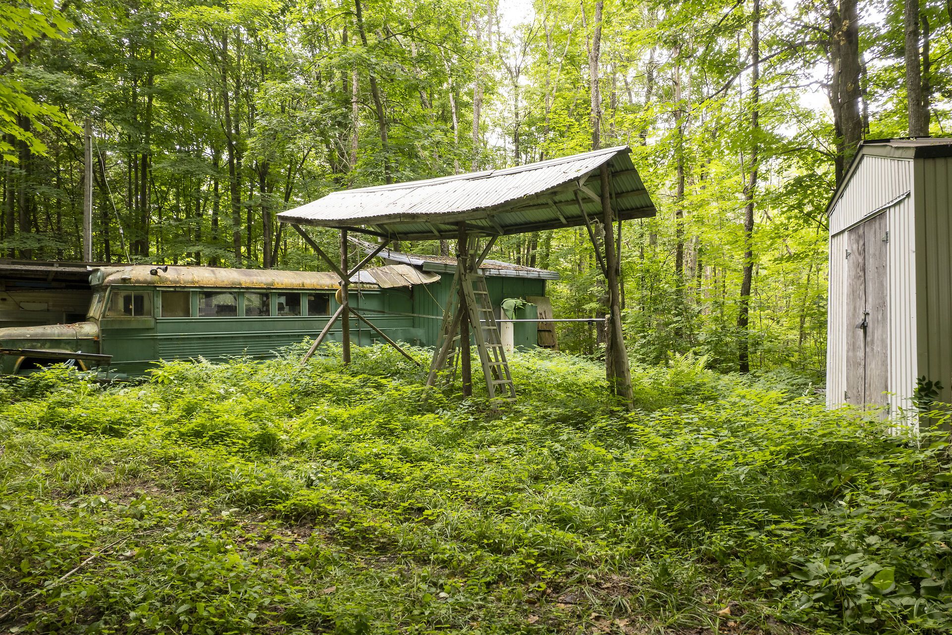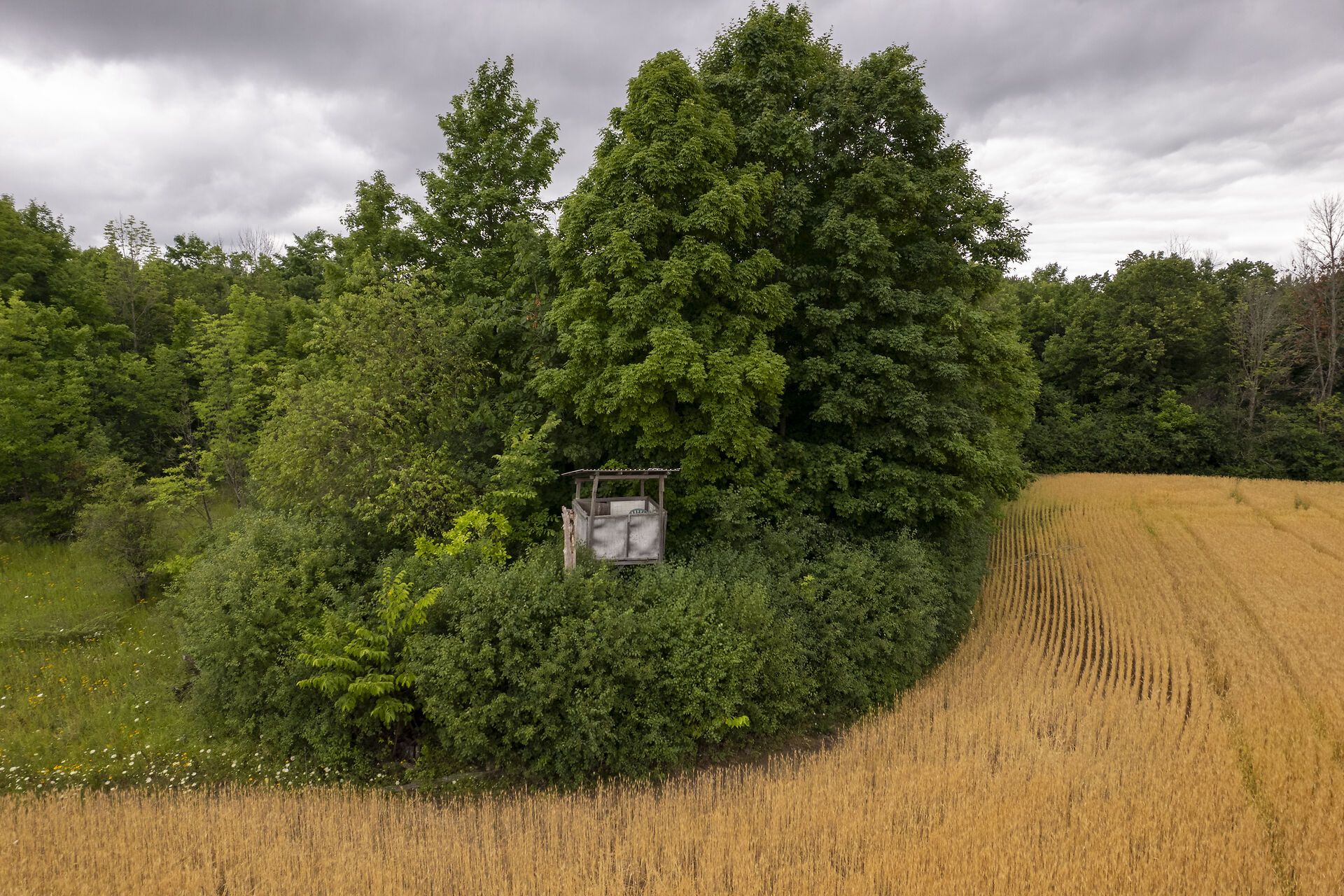 • Includes a well, old horse stable, and tree stands.
