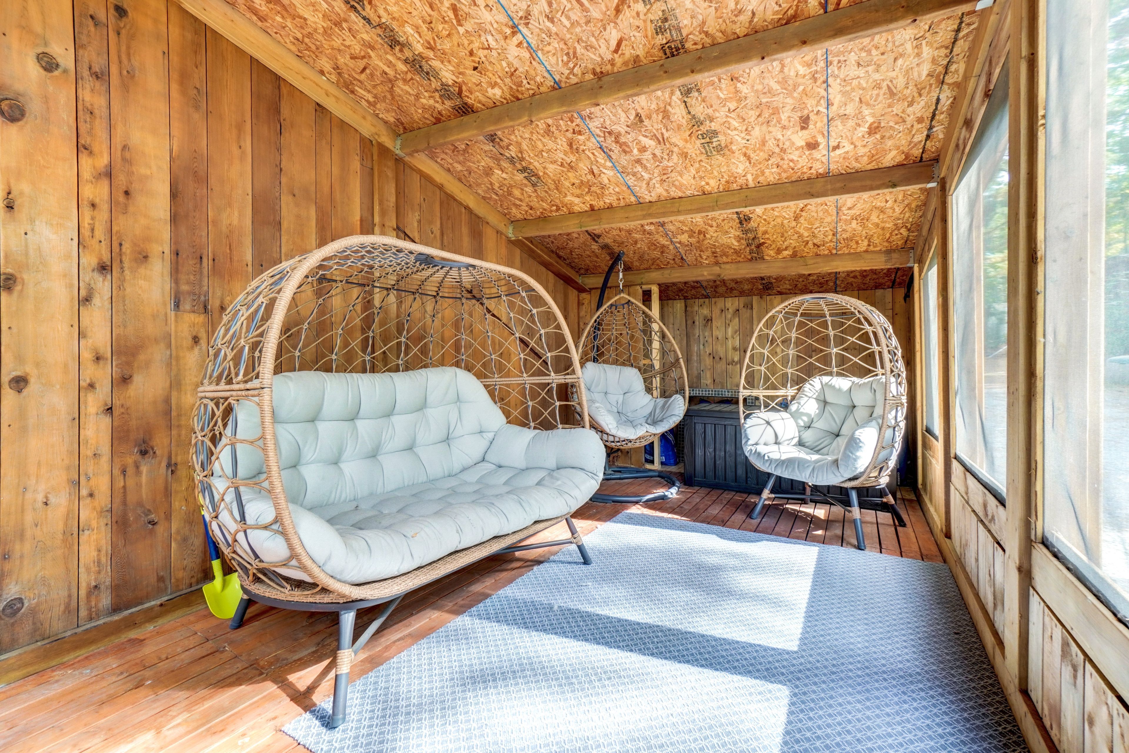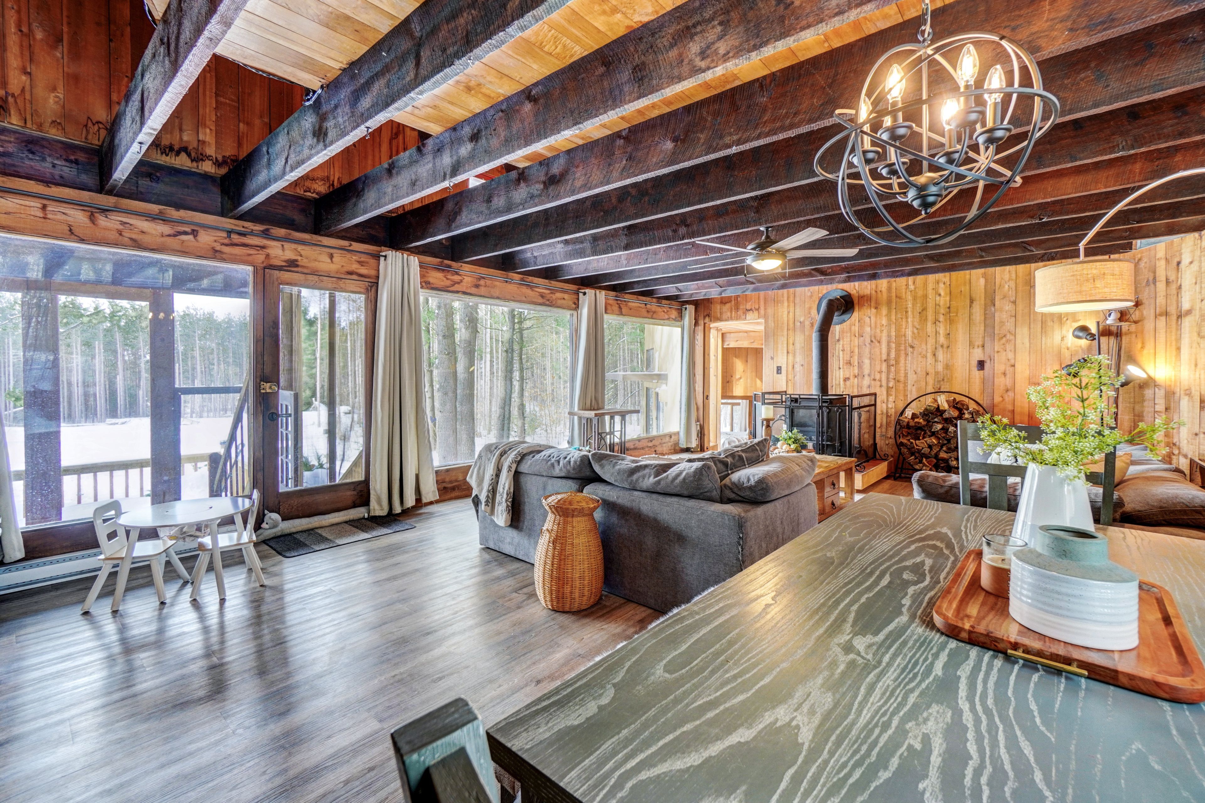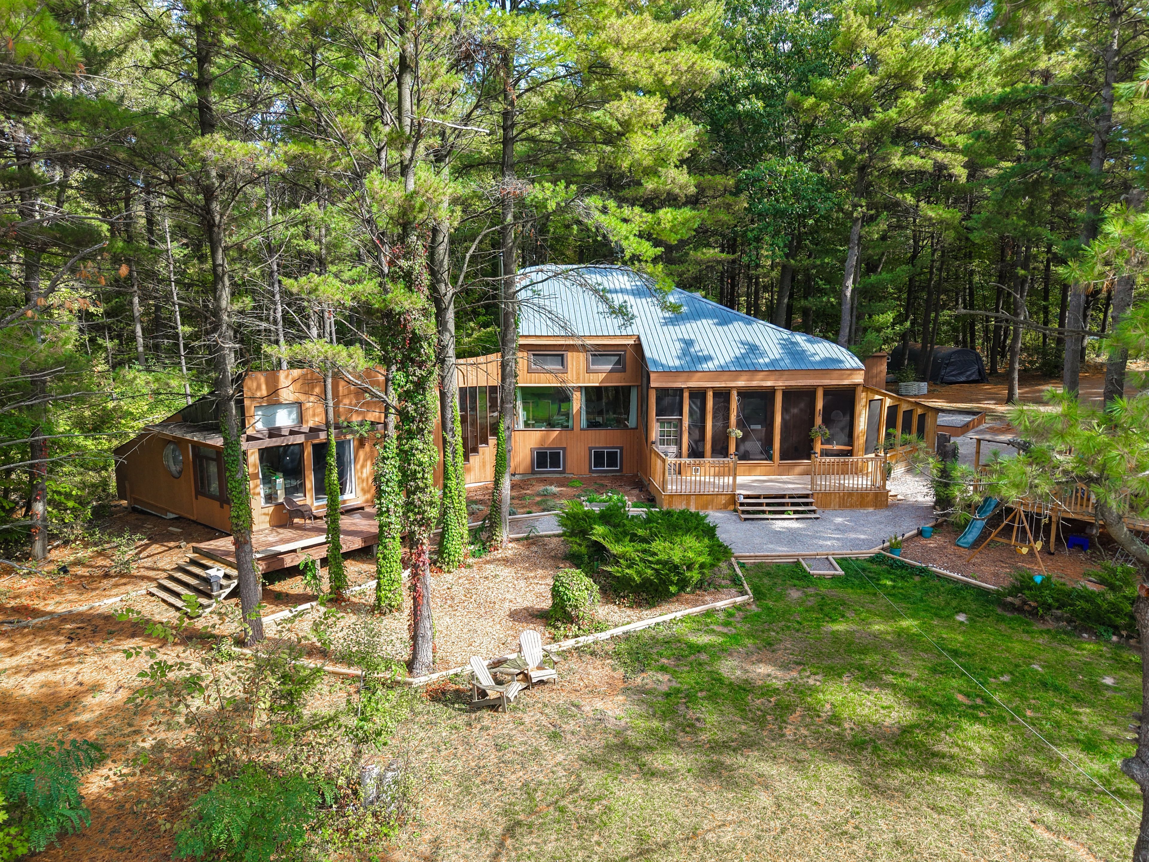 Tucked well back from the road on 20 private acres, this secluded country retreat designed by local architect jerome markson offers the perfect balance of peace and proximity, just 14 minutes to uxbridge and 8 to sunderland. A tree-lined drive leads to a thoughtfully updated 2+2 bedroom home featuring open concept living anchored by a wood stove, a renovated kitchen, and walkouts to a covered 3-season room and multiple decks. The principal bedroom enjoys its own private deck overlooking the property. An upper-level bedroom and office that provides a flexible space for working from home or guest overflow, while the finished lower level offers two additional bedrooms with bright above ground windows. Approximately $250,000 has been invested over the past six years, including a metal roof, renovated kitchen and bathrooms, updated plumbing, majority electrical updates, finished basement, rebuilt 3-season room, new well pump, uv filtration system, replaced main overhead power line to the house (including transformer and hydro poles) and more. The land is the true highlight: a pond, maintained walking trails, garden area, play space and backing farmland create an exceptional setting for year-round enjoyment. Enrolled in the managed forest program for significant property tax savings. A rare opportunity to own a private escape without sacrificing convenience.