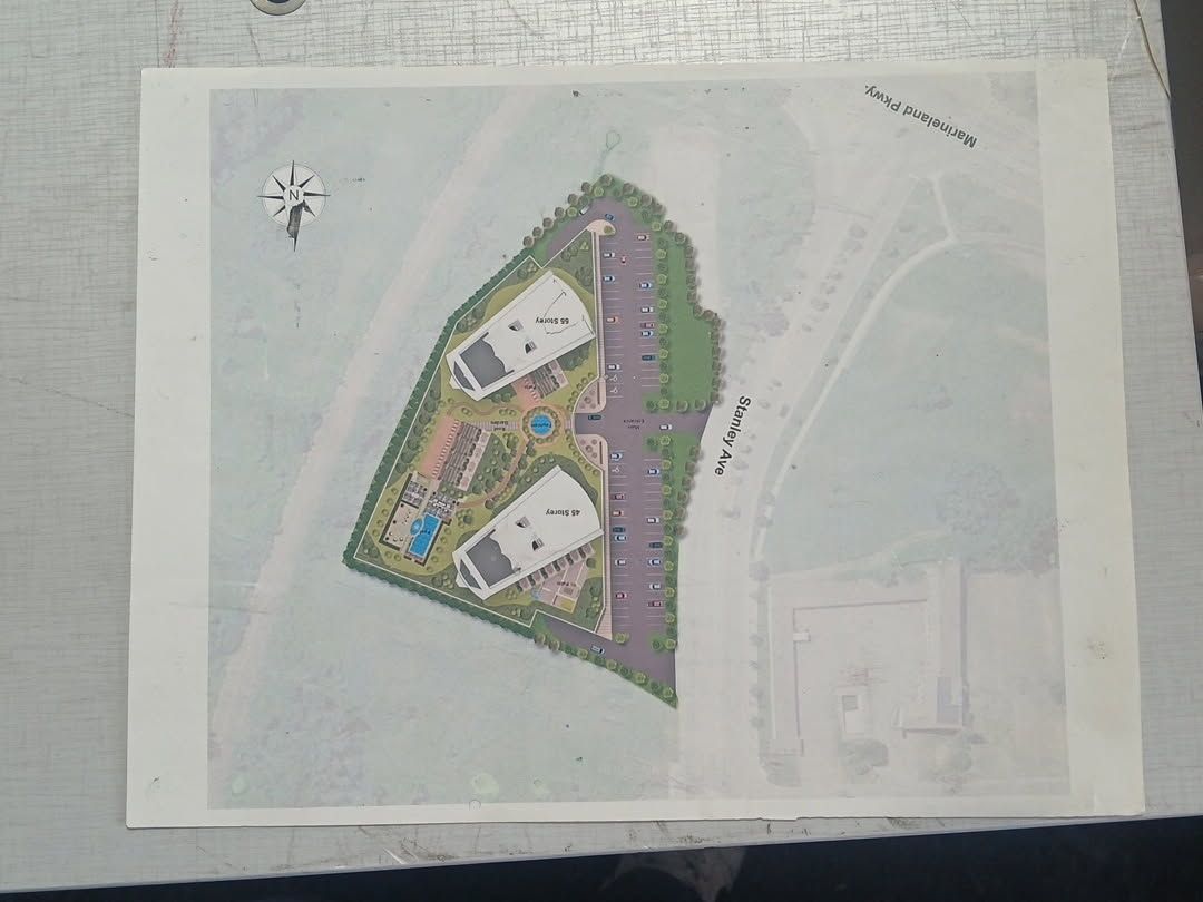 • Concept plans for two 35-story towers with various amenities and retail space.