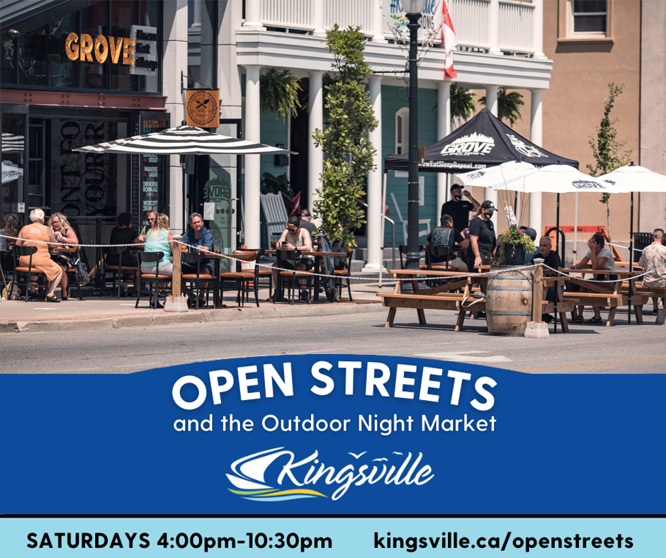 Summer isn’t over just yet despite the cooler evenings and mornings that have started to set in. If you are looking to enjoy the last bit of summer weather, support local, support YQG, and enjoy some great food, drinks, and shopping from local vendors, look no further than Open Streets Kingsville. Saturday night, September 11, from 4:00pm-10:30pm a portion of Main Street and Division Street will be closed to traffic so visitors can freely walk the streets, businesses can expand into the streets and shops can set-up outdoors as well.