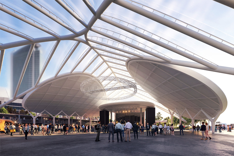 Option 1 is to install a full-sized canopy along with upgrades to the site to include site and canopy lighting, a water feature, landscaping, and more. The canopy would provide coverage for approximately 5,000 people and the estimated cost for this option is $67.2-million.