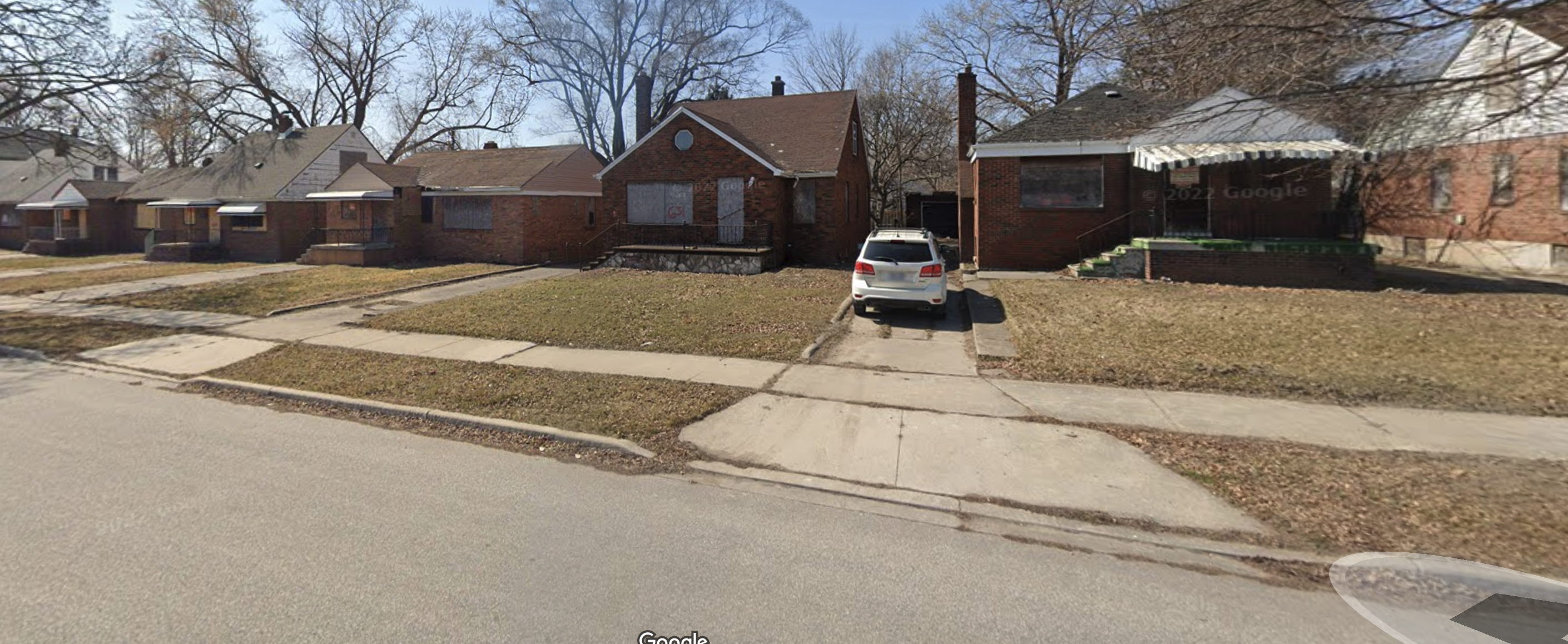 Google Streetview of a portin of the 600 block of Indian Road with boarded up homes.