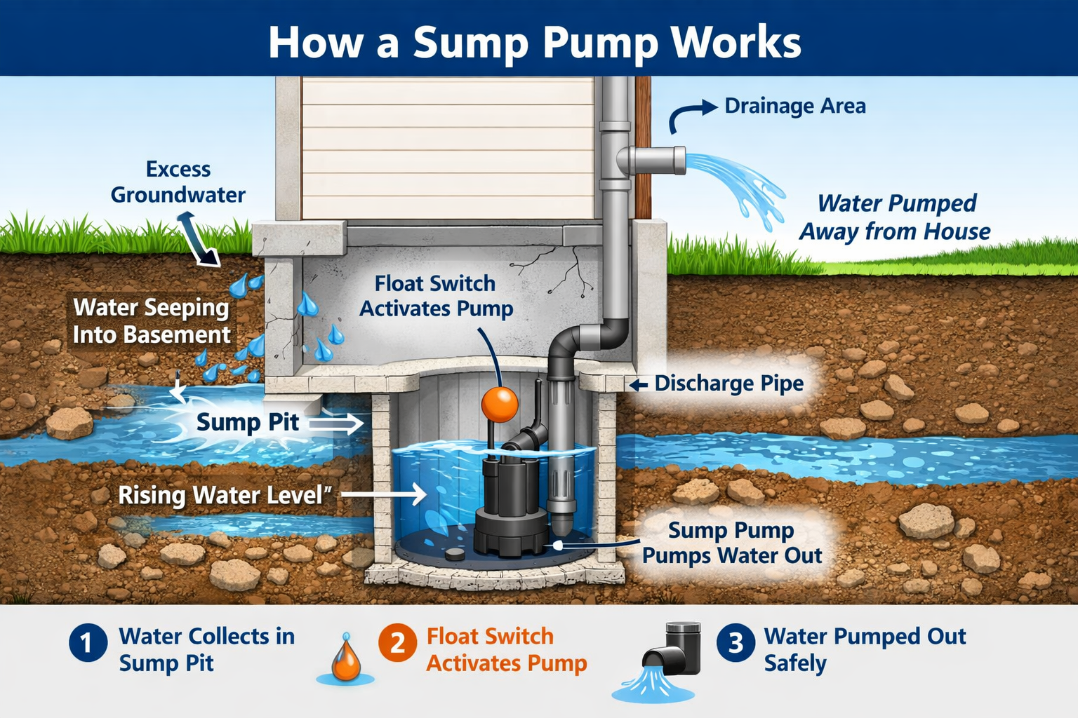 In many cases, sump pump failures happen during heavy rain or spring thaw, exactly when they are needed most.