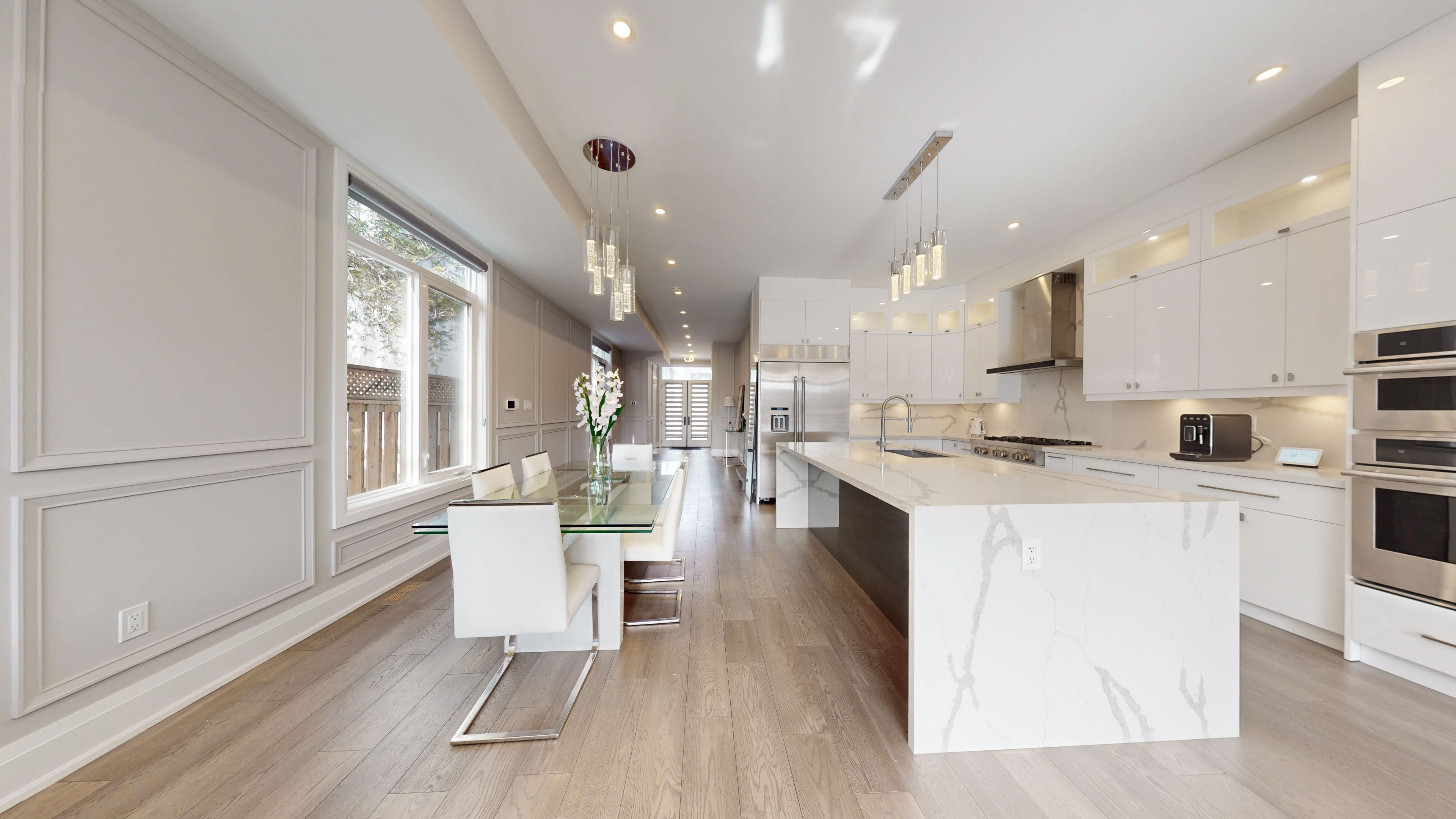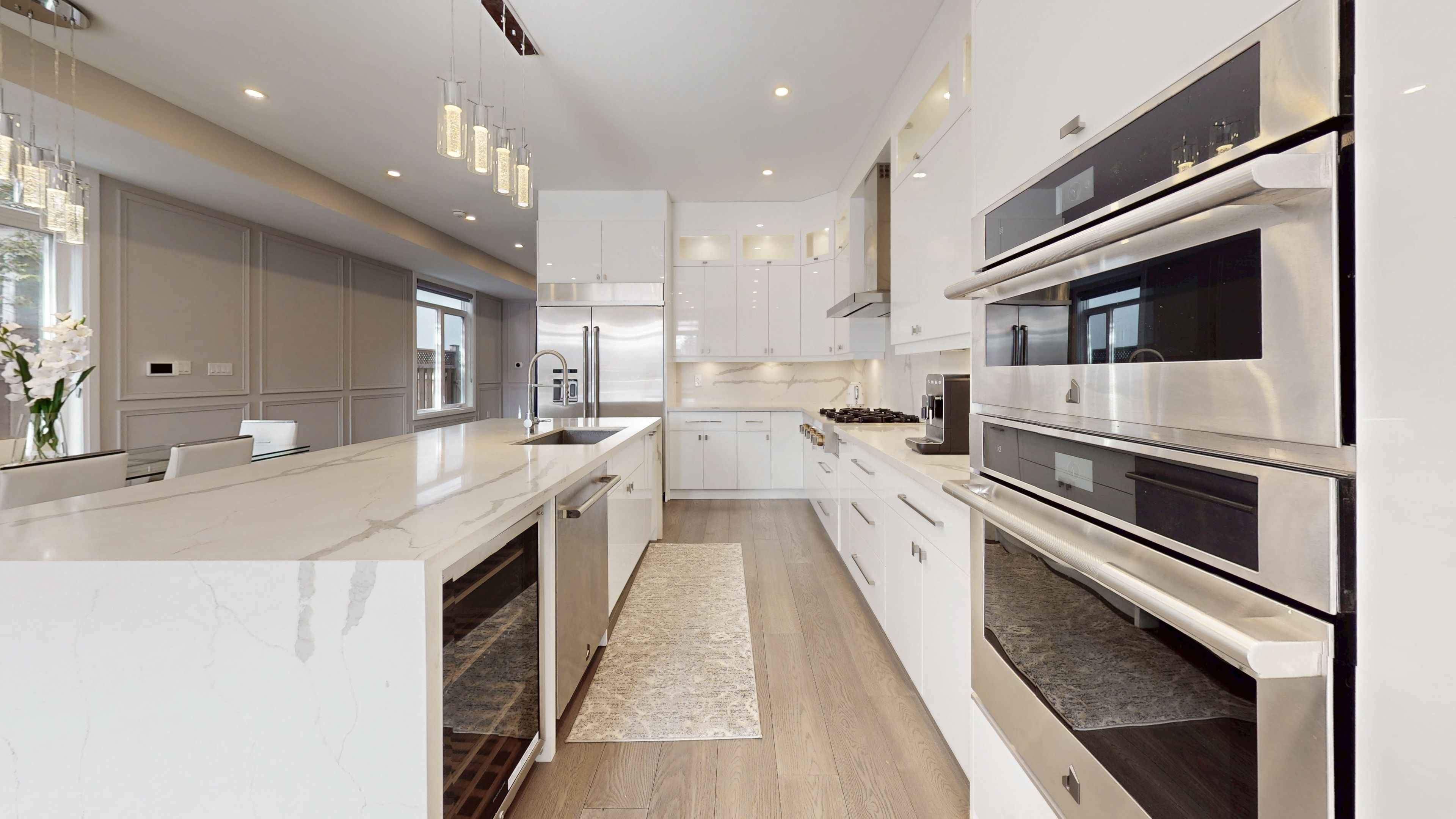 • Chef-inspired kitchen with modern appliances and a large center island.