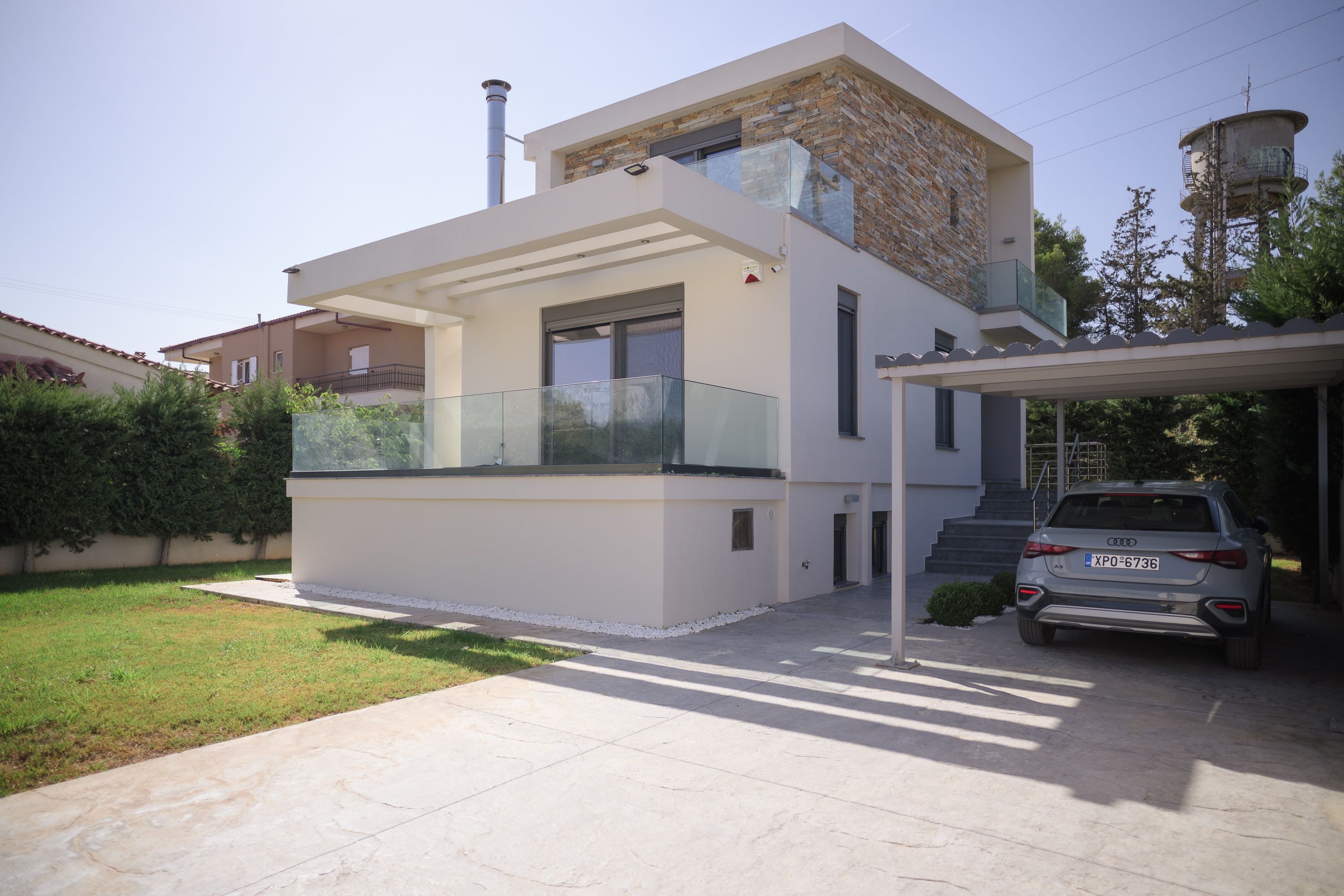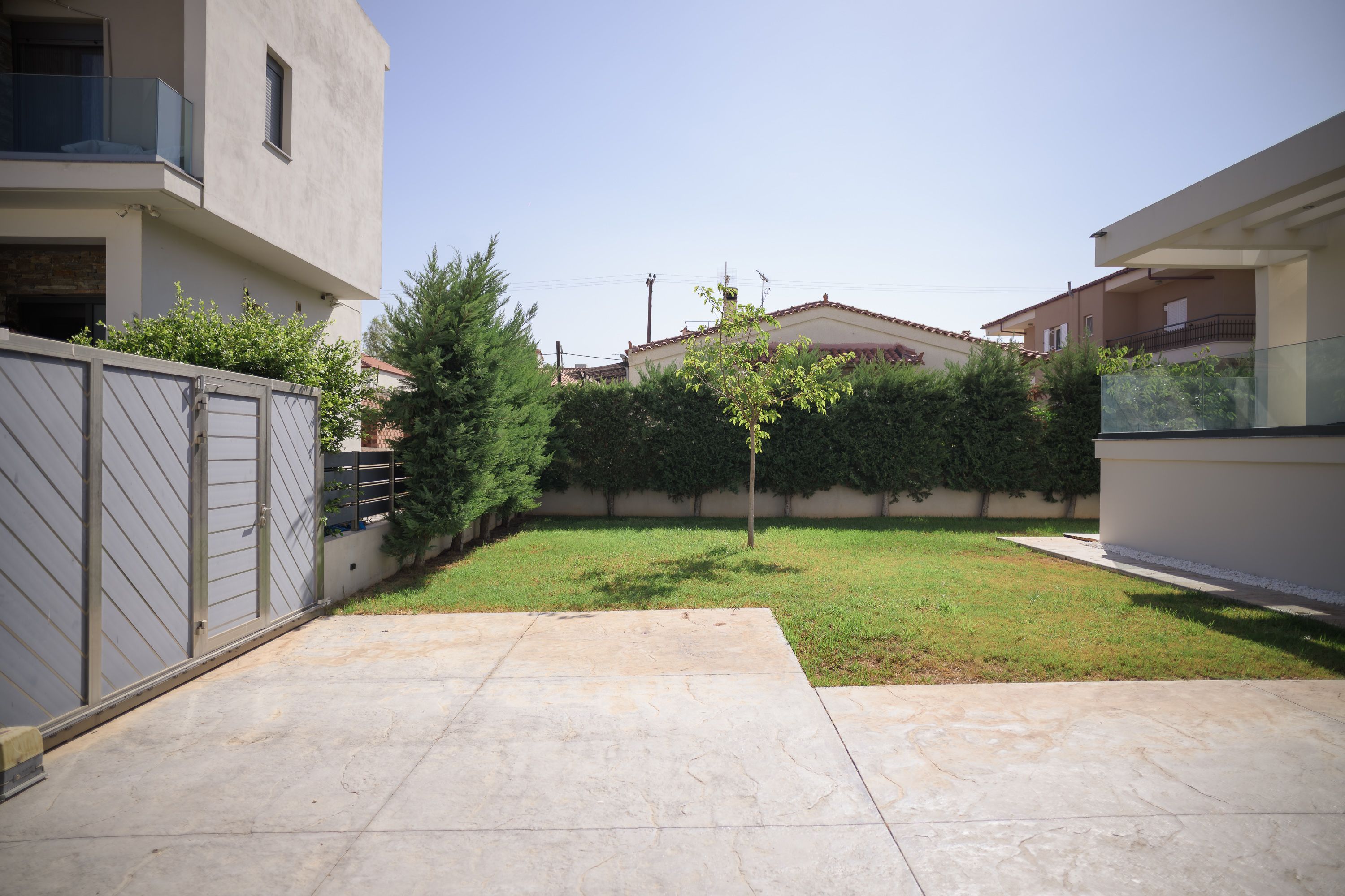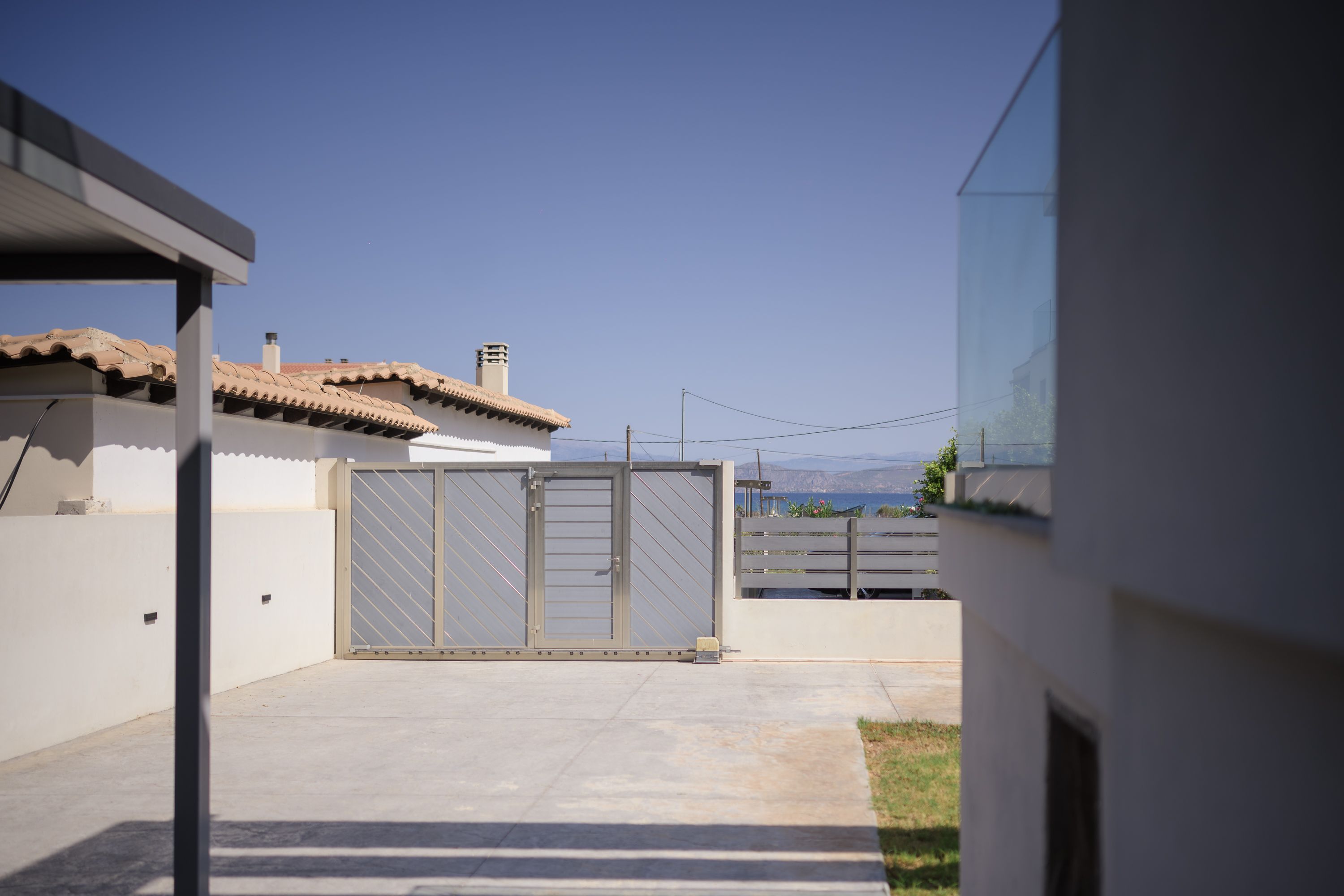 Welcome to villa azure. Built in 2019, this beautifully maintained detached home is ideally situated just steps from the beach, mare west mall, and some of the corinthian gulf's most sought-after destinations-kalamia, loutraki beach, vrachati, kiato, and isthmia. Conveniently located only one hour's drive from athens, this property offers the perfect balance between coastal tranquility and city accessibility. Offering 170 sqm of interior living space on a 500 sqm plot, the residence features 2+1 bedrooms and 4 bathrooms, with a basement apartment and a private entrance-perfect for guests or additional income. Enjoy two expansive terraces: one off the main living area and another from the primary bedroom, both overlooking the stunning corinthian gulf. Outdoor living is enhanced by a beautifully crafted stone bbq area, ideal for entertaining family and friends. Modern comforts include a fully equipped security system, automated gate with mobile app control, landscaped grounds with automatic irrigation system and tree lined for added privacy, an upgraded drive-in carport, and three storage rooms. Eligible for the golden visa program, this property is not just a home but a lifestyle investment-blending timeless architecture with exceptional seaside living. Property is listed for 430,000. 00 euro