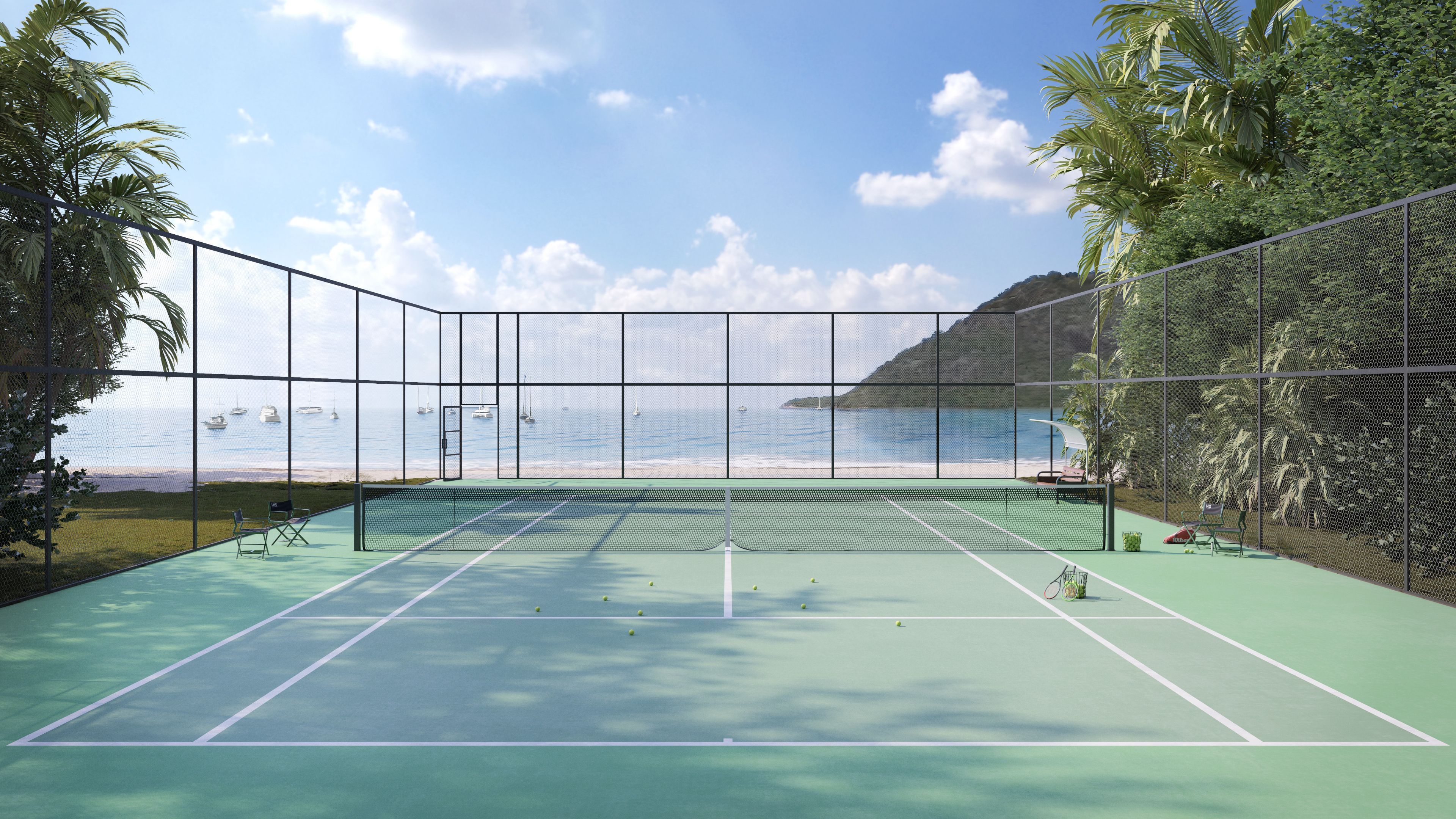 • Private dock for yachts up to 80 feet and a tennis court included.